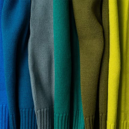 Lambswool comes from the first shearing of young sheep at around 7 months old. It is a soft, slightly elastic yarn with a luxurious feel, sourced by Kettlewell from Italy, Australia, New Zealand and South America for its quality.