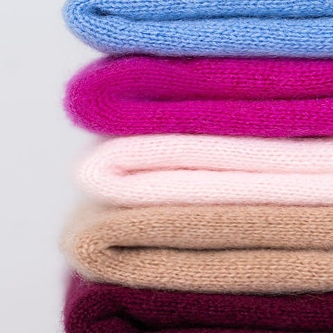 Our cashmere gauze stoles are hand-crafted in a small family-run factory in Nepal using fibre from Himalayan mountain goats, combed out naturally when they moult in warmer weather. Our supplier, Cocowai, works closely with the local community and supports charitable projects. For our cashmerino blend, the cashmere is sourced from Mongolia and blended in Italy.