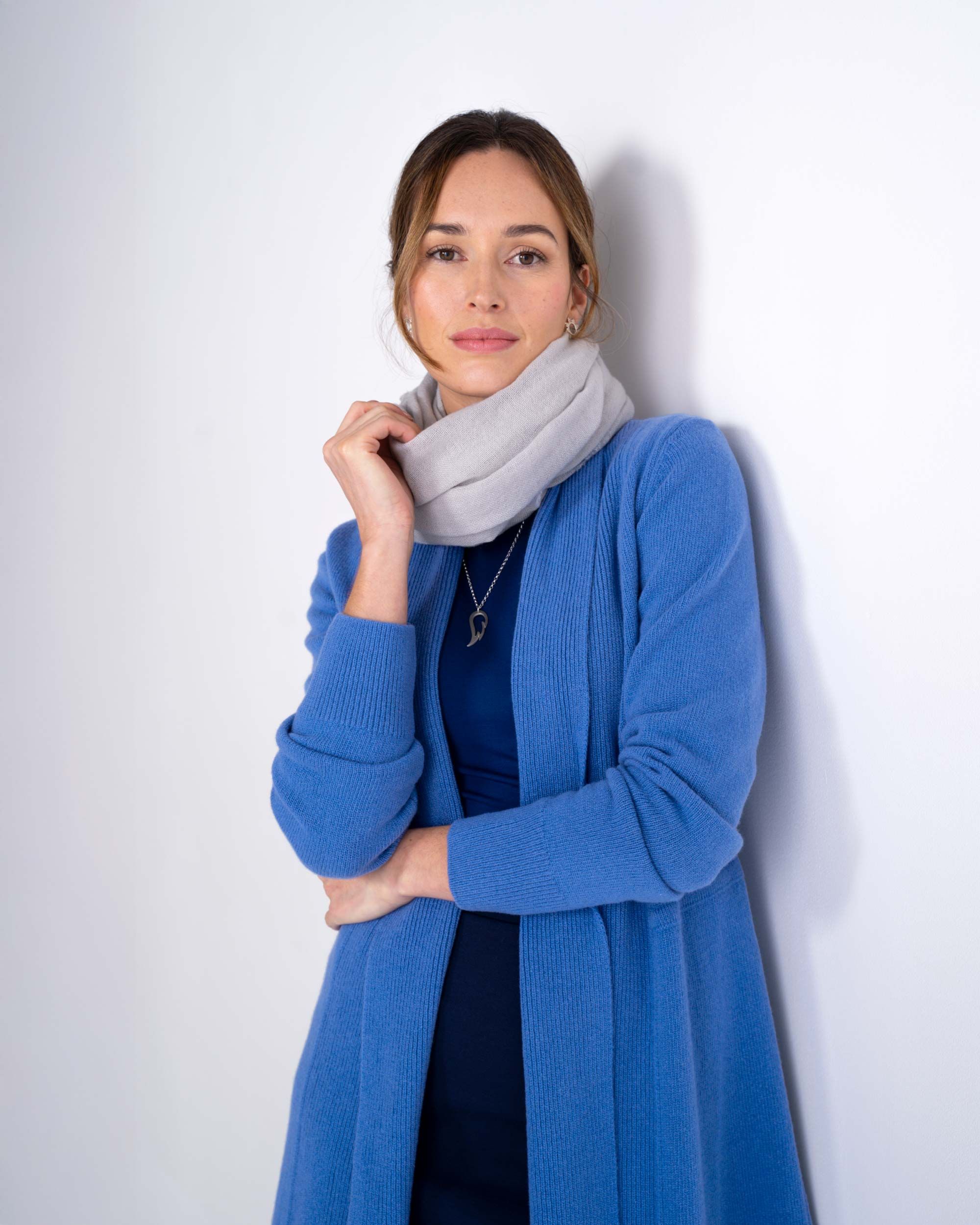 Wrap yourself in luxury with our 100% Lambswool long length cardigan. This stand-out style blends the cosiness of a coat with the comfort of a cardigan, with long sleeves, an open front, and subtle ribbed cuff and collar details.