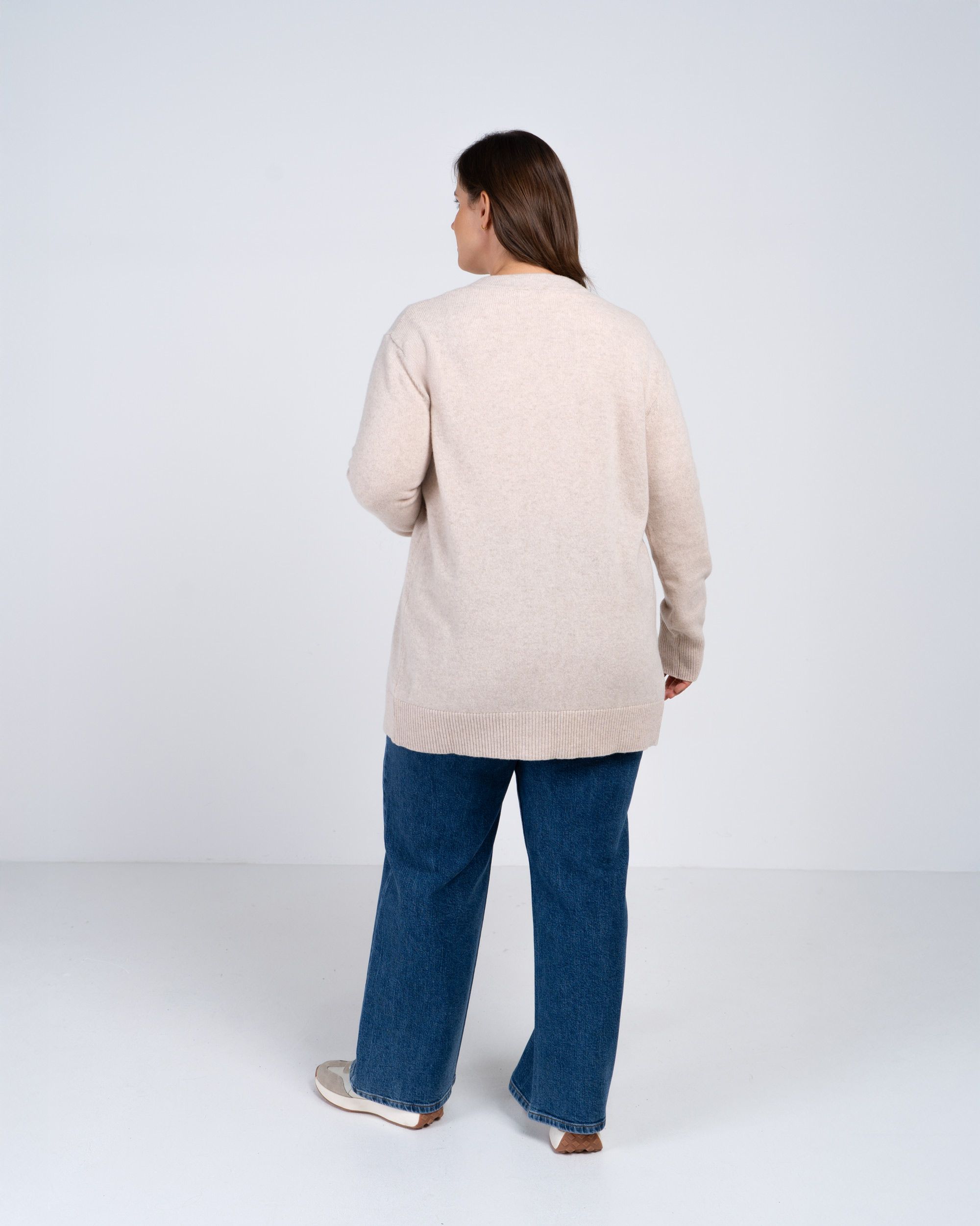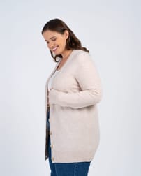 The perfect cosy layer for chilly days, the Boyfriend Merino Cardigan features a relaxed longline fit. Complete with a deep V neck and natural effect buttons, this style can also be layered over our Josie Skirt for a classic co-ord. Wear open or buttoned up for versatile styling. It features ribbed hem, cuffs and neckline.