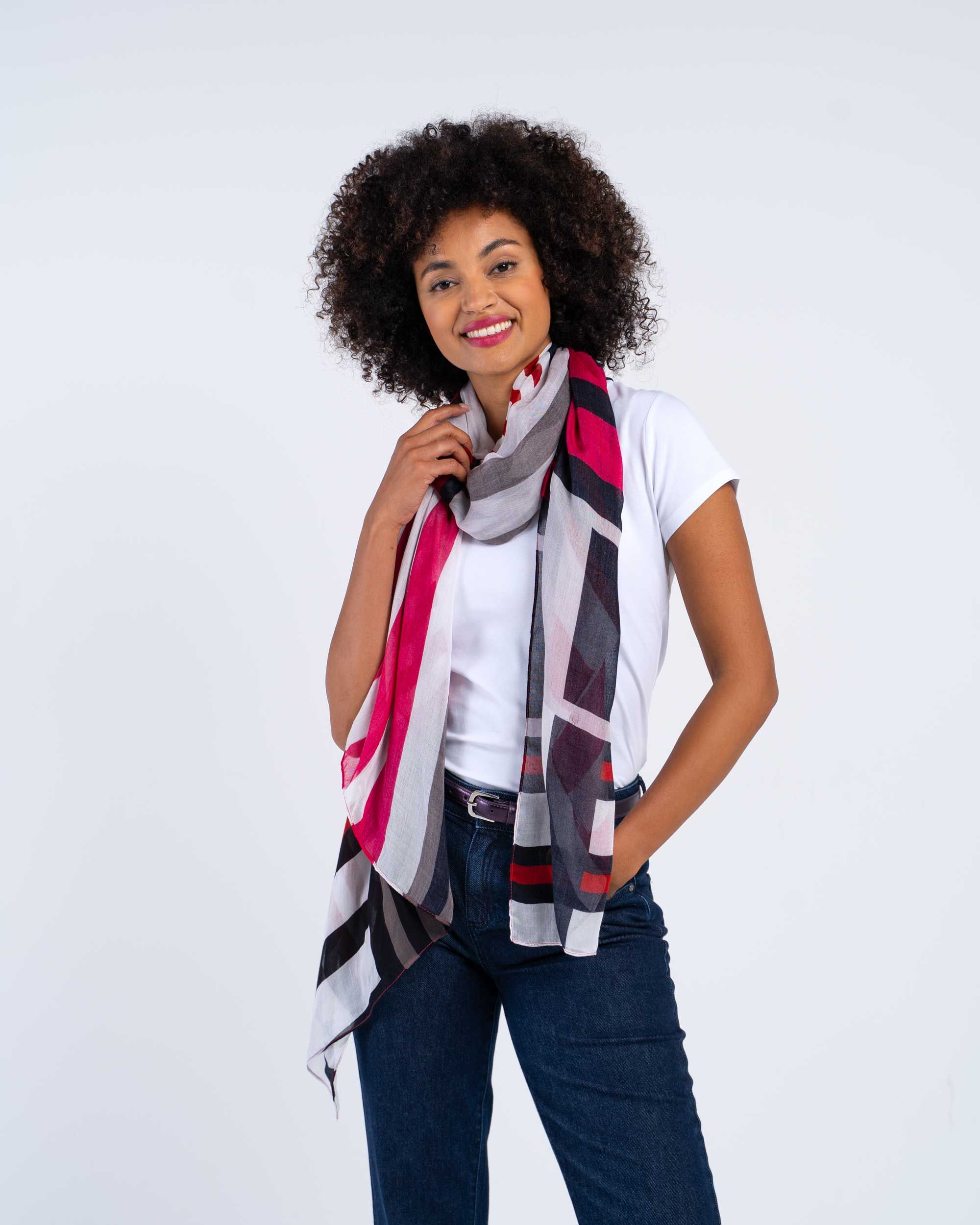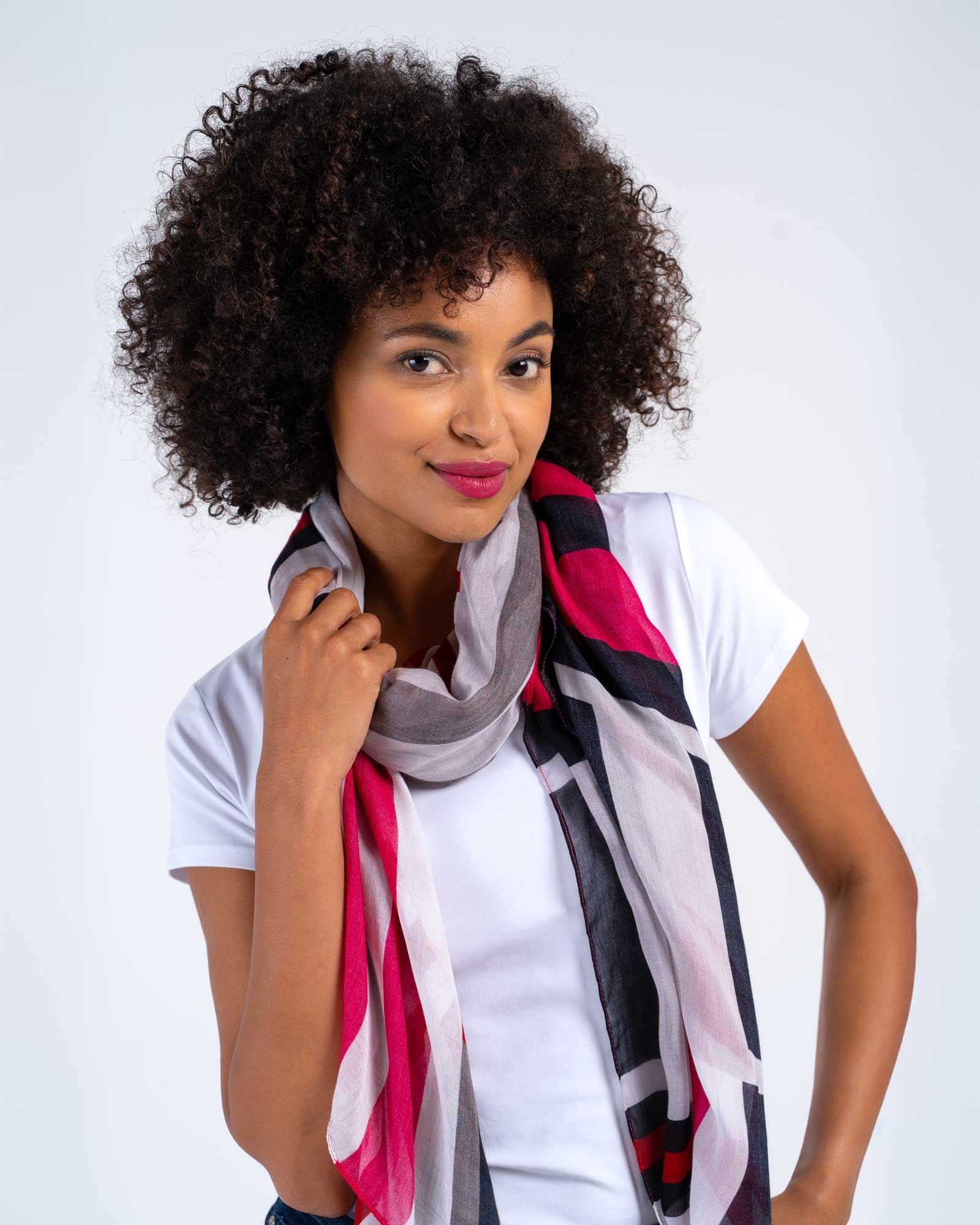 A contemporary twist on a timeless accessory, this rectangular scarf is defined by its bold block stripe design and versatile styling. Crafted from beautifully soft modal, it feels smooth and lightweight against the skin, offering a gentle warmth and elegant drape that makes it an easy companion for everyday wear.