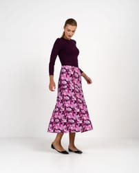 A maxi skirt crafted from softly brushed viscose jersey with a touch of stretch. Cut in a flattering full length, it features an elasticated waistband for comfort and ease, with front and back seam detailing for subtle shaping. Fully lined for a smooth drape, it feels light and wearable while still offering gentle structure.