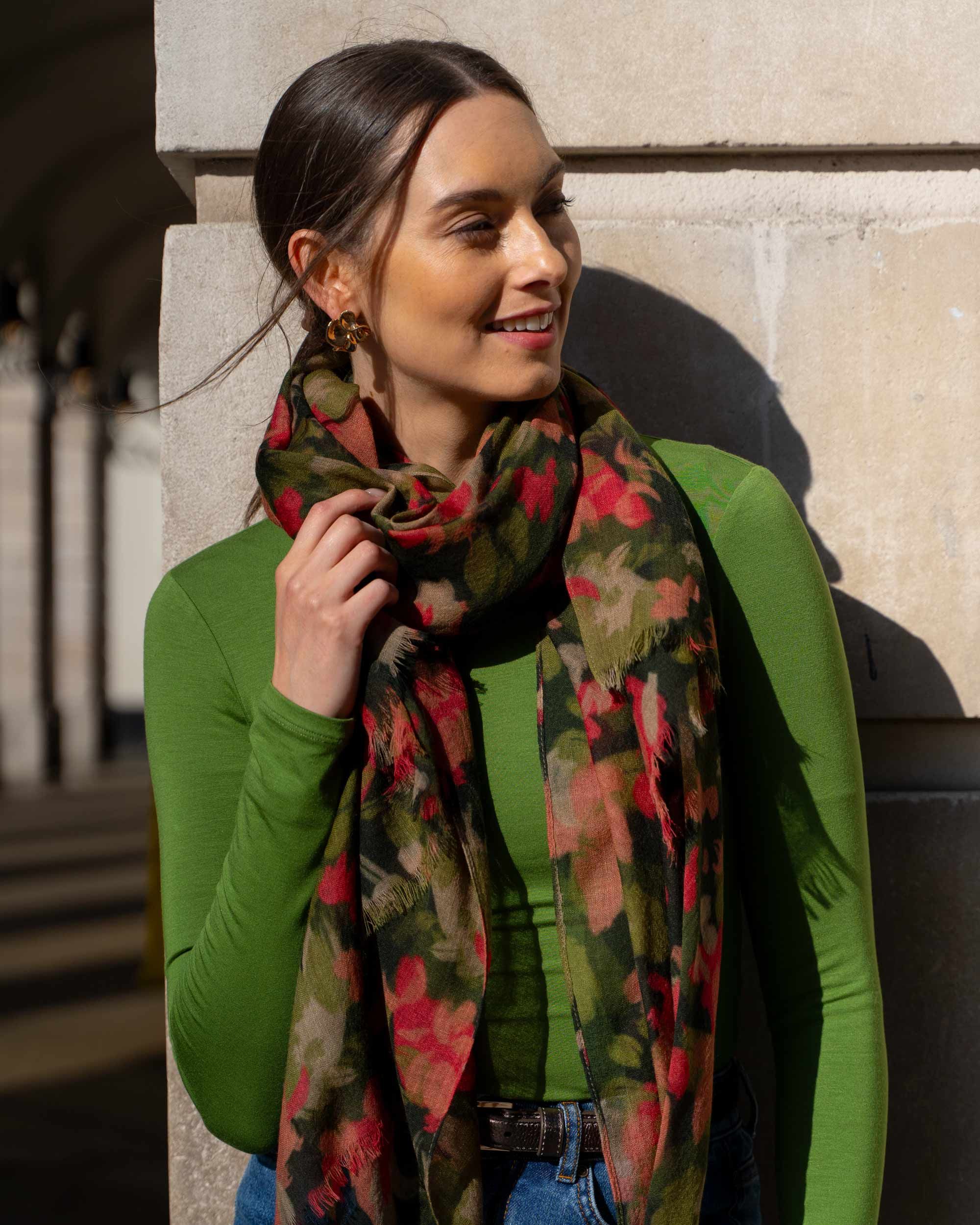 Brushed Floral Wool Scarf