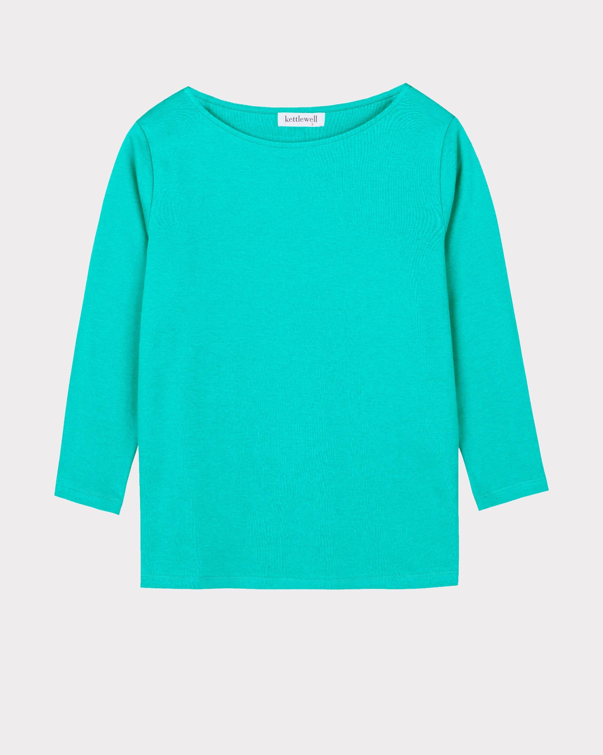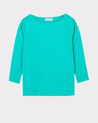 This cotton top combines a flattering shape with a beautifully structured feel. The classic boat neckline and ¾ length sleeves create an elegant, versatile silhouette, while the relaxed regular fit ensures easy comfort. Side vents at the hem add subtle movement, making this a piece you’ll reach for season after season.