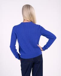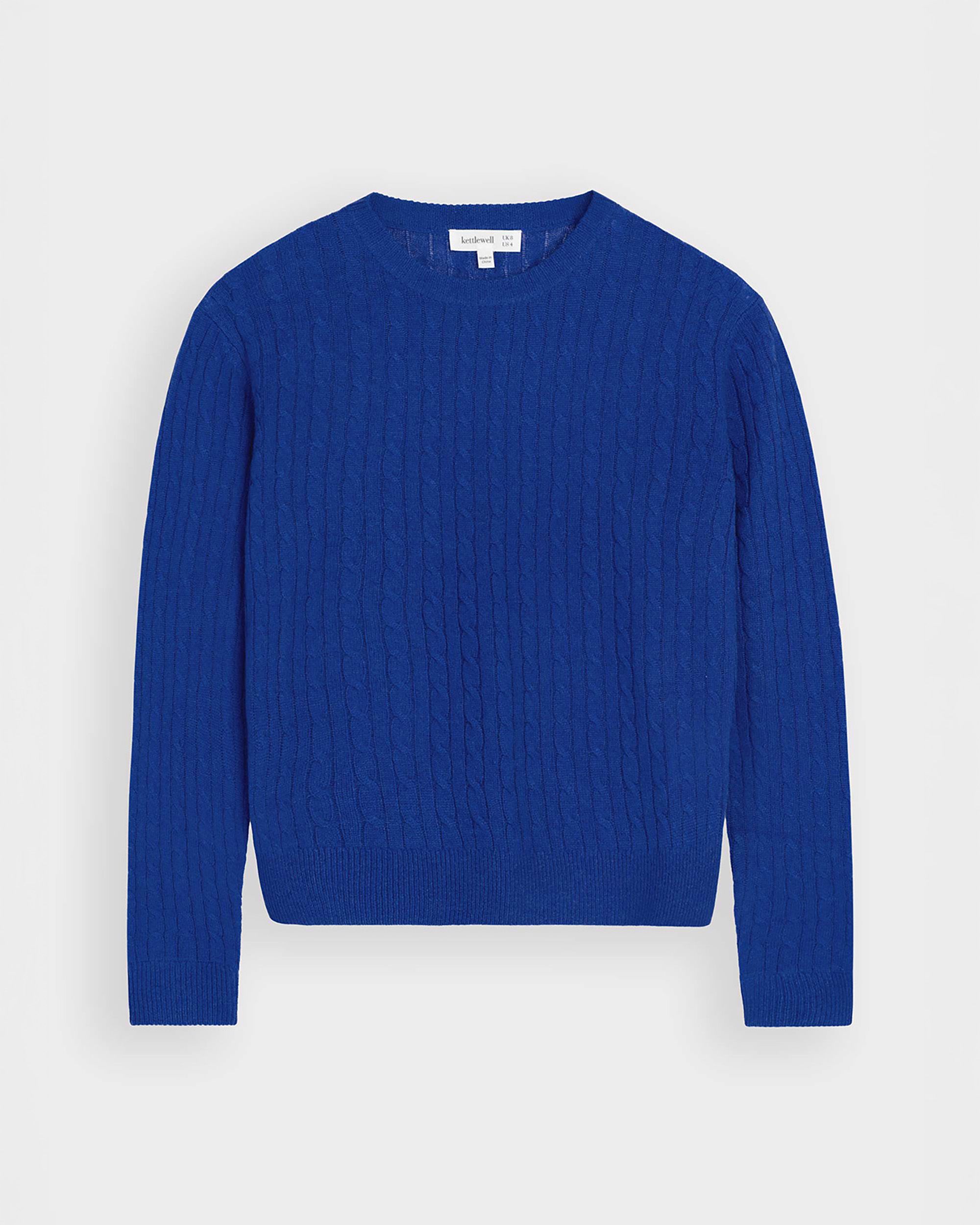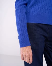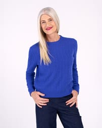 This regular fit, long sleeved sweater features cable detailing and a classic crew neckline. Knitted from a merino and cashmere blend.