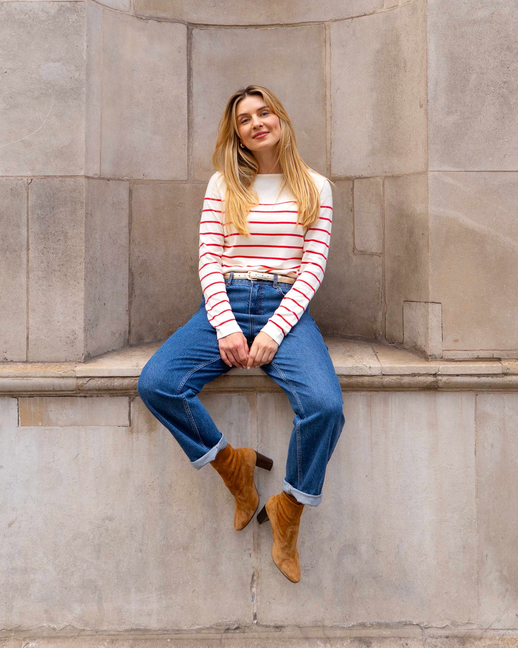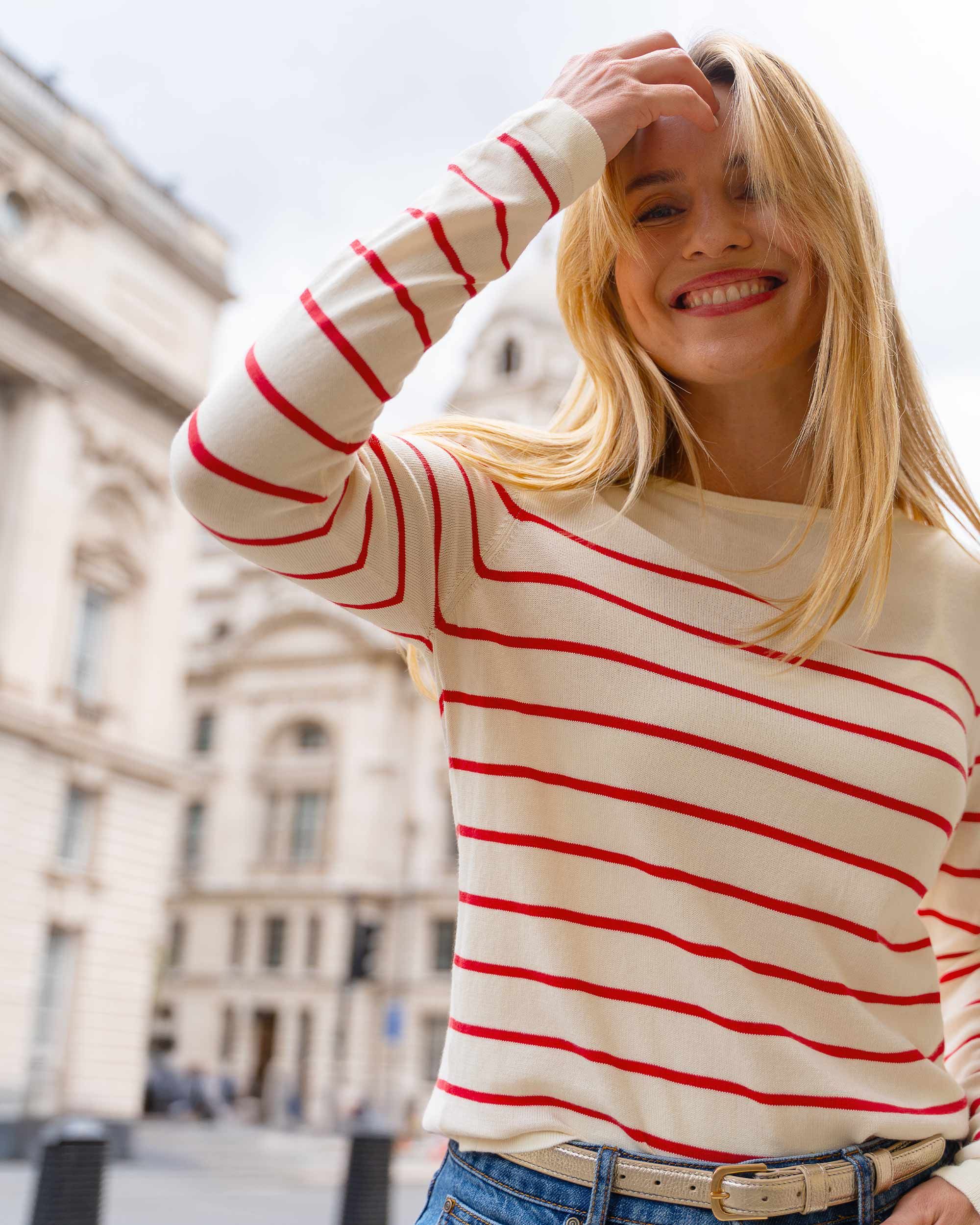 Bloomsbury Stripe: Cream, Geranium