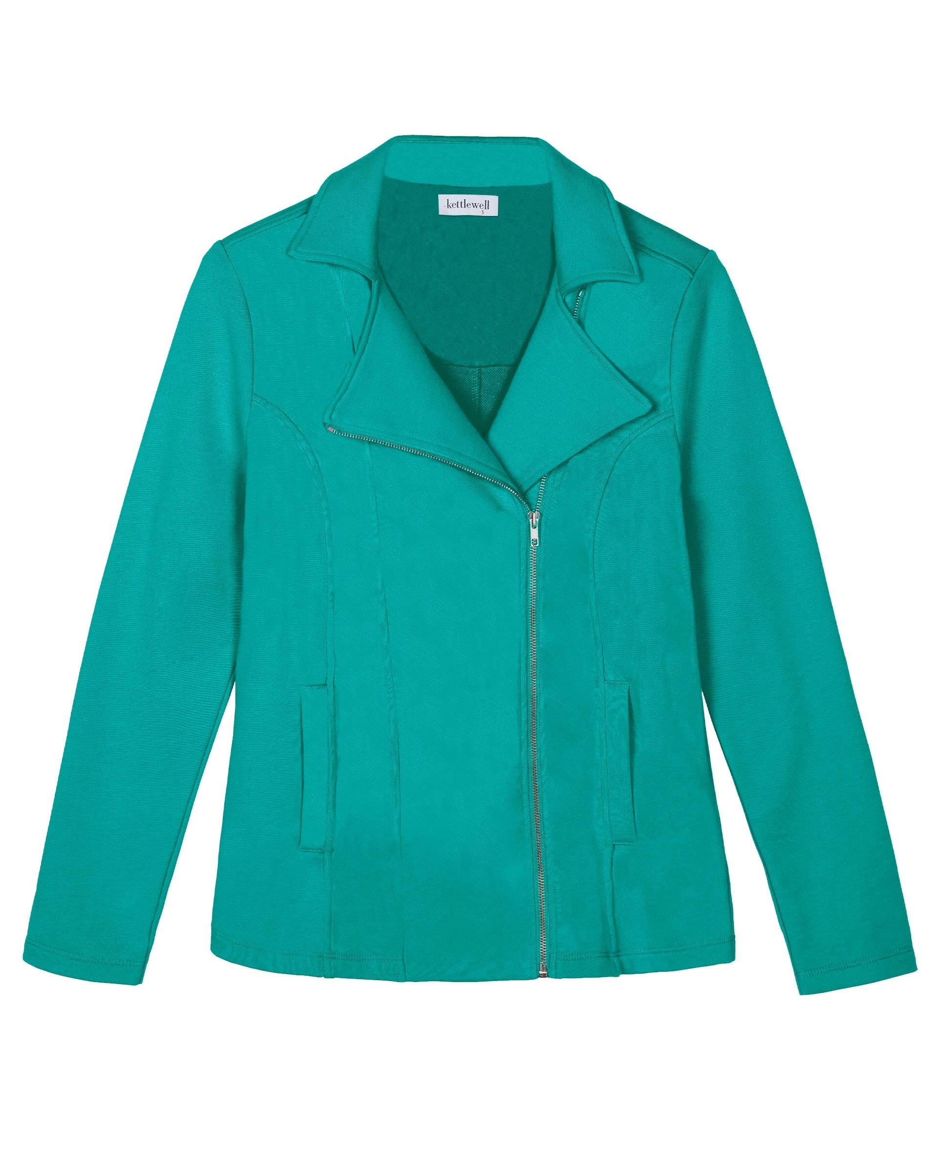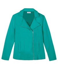 A biker-style design complete with an asymmetric zip-front fastening and convenient side zip pockets, this jacket offers both style and functionality, allowing for effortless layering and versatile styling.