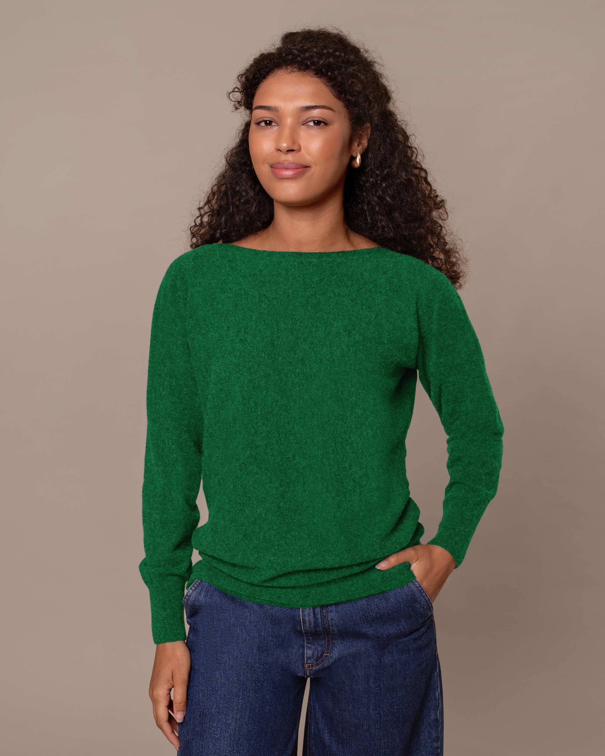 This super soft jumper has a relaxed fit coupled with a tight hem to create a flattering blouson effect. Clean and simple in style, we’ve designed this with a slash neckline with a narrow, ribbed collar trim and deep ribbed hem and cuffs. Perfect for lounging, every day wear or dressing up for evenings out.