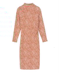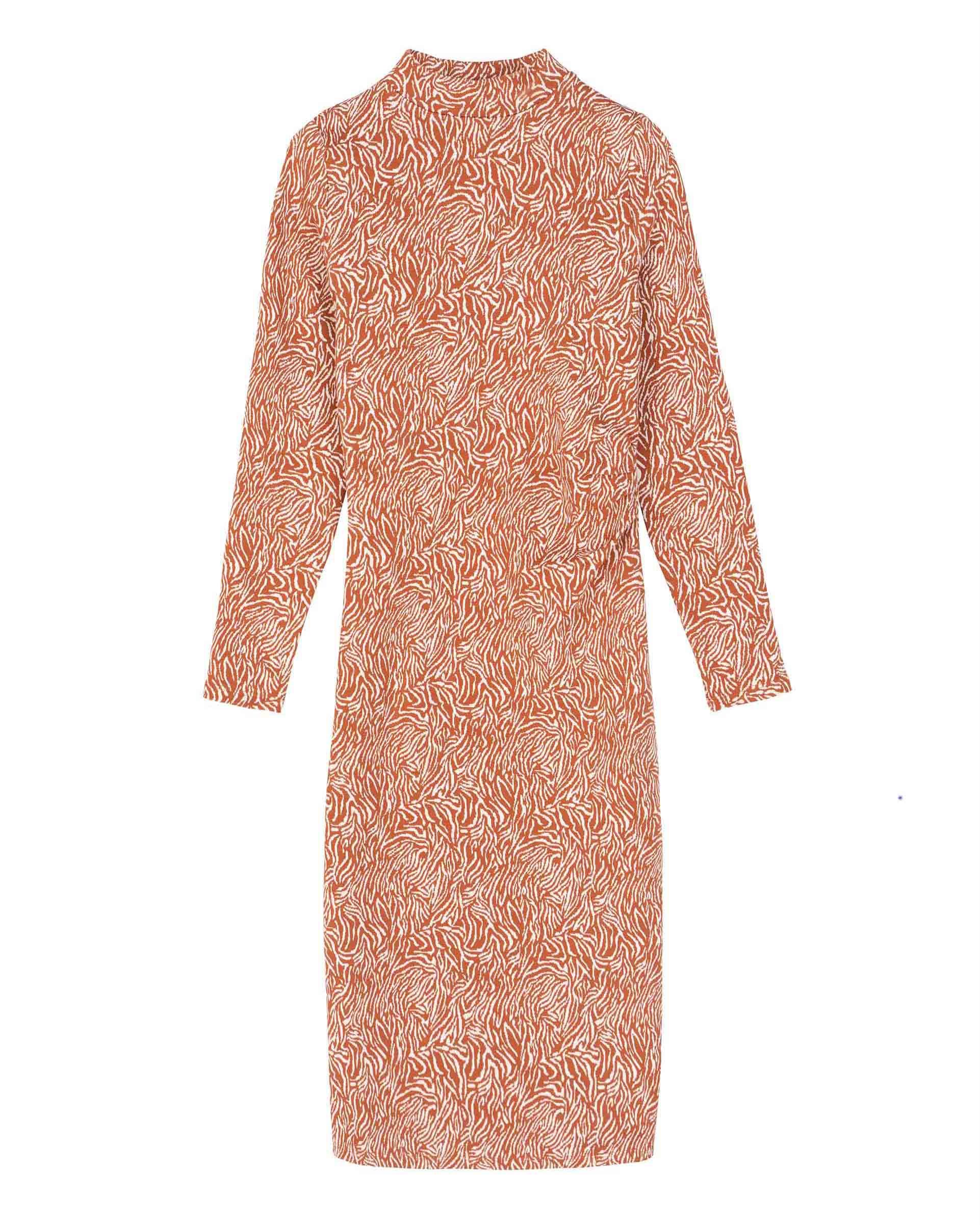 - Mock neck, long sleeve fitted dress with pleat details at waist