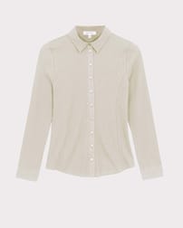 This soft cotton fitted ribbed shirt features a curved hemline and princess seam detail front and back for additional shaping.