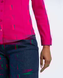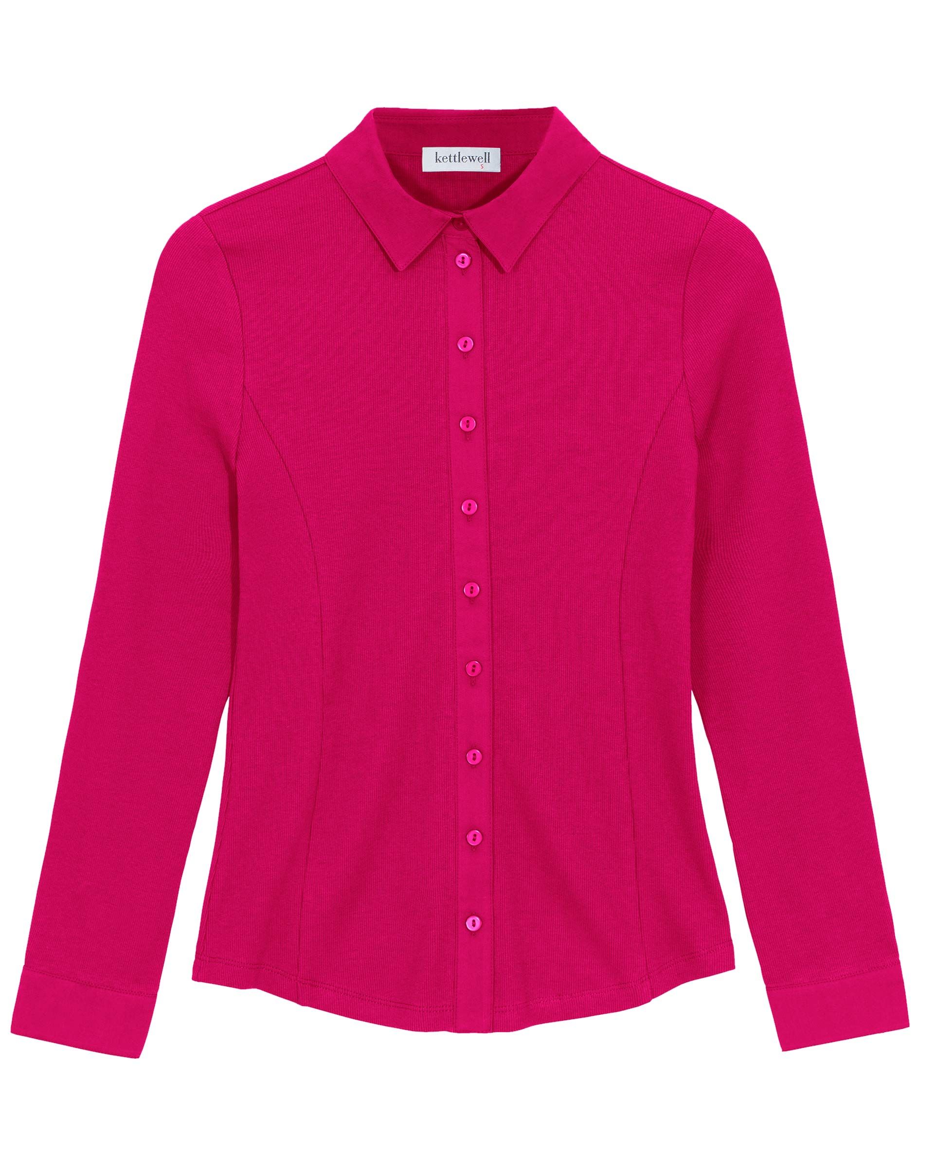 This soft cotton fitted ribbed shirt features a curved hemline and princess seam detail front and back for additional shaping.