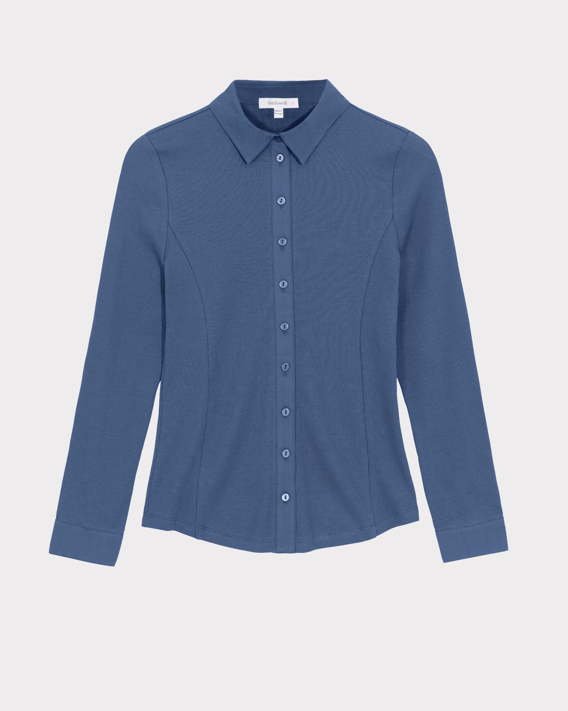 This soft cotton fitted ribbed shirt features a curved hemline and princess seam detail front and back for additional shaping.