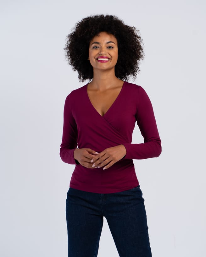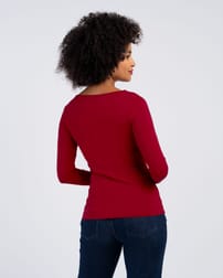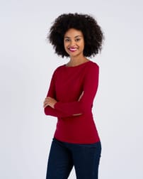 Designed with a slash neckline and long sleeves, this fitted piece brings a modern edge to your wardrobe. The double-fronted, clean, stitch-free neckline creates a soft, structured, and smooth look, ensuring nothing shows through. The cotton modal blend feels wonderfully lightweight and soft, while offering excellent breathability and gentle stretch, so you stay comfortable all day. Ideal for work to weekend, this piece pairs beautifully with trousers or jeans.
