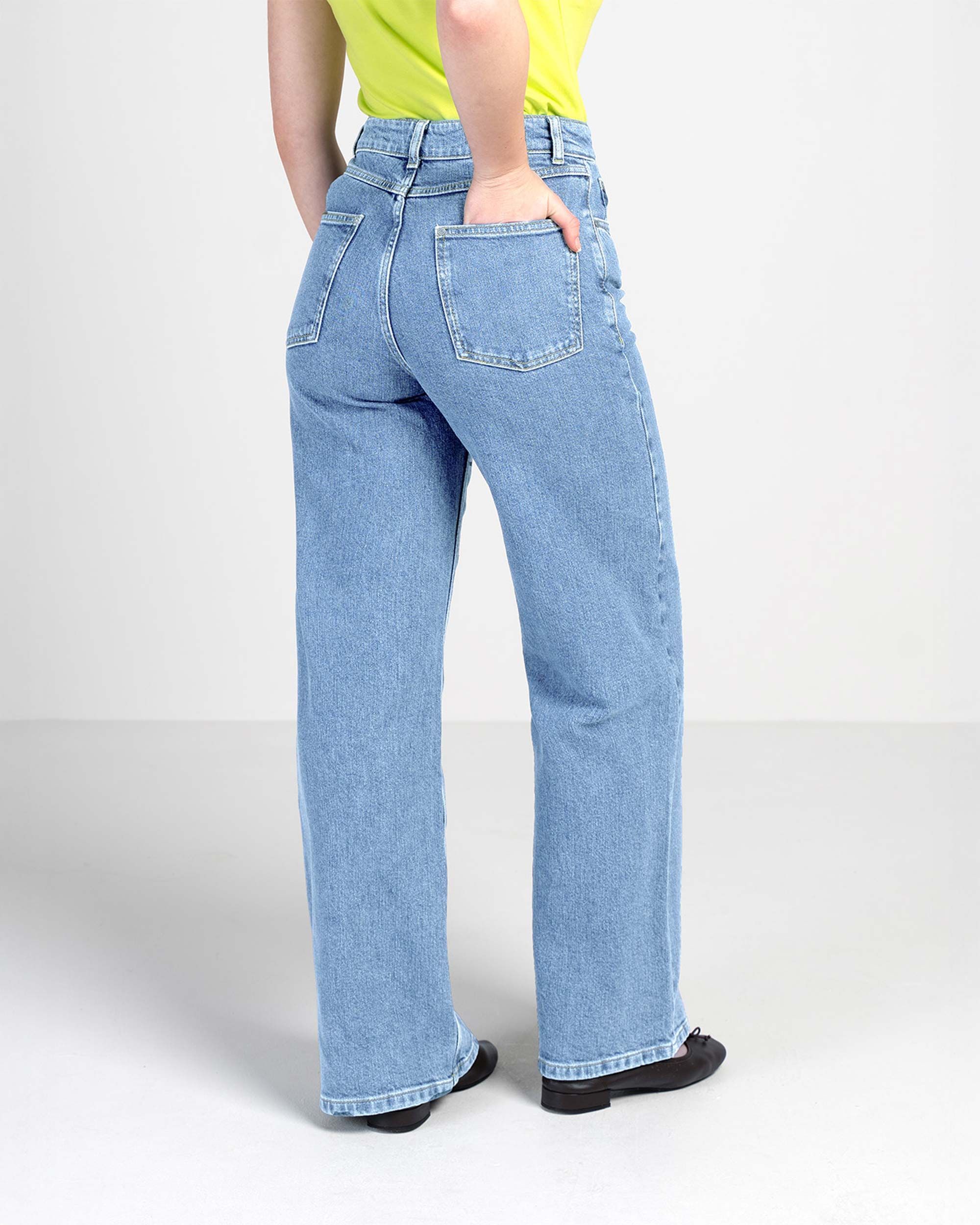 Crafted from our Darla Denim fabric, these full-length jeans are designed with a high-rise waist. The cut blends straight and wide-leg shapes and features five-pockets, belt loops, front zip fastening and our signature Darla Denim buttons.