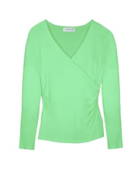 A beautifully draped style with long sleeves and an an elegant faux wrap crossover front that flatters the figure. Wear it alone for a sleek finish or layer with a camisole underneath for added colour and coverage. Crafted from a cotton modal blend this fabric offers the perfect balance of comfort, breathability, and stretch.