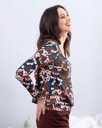 This medium scale floral print top adds a touch of romance to everyday dressing; pair with tailored trousers for a contemporary look, or style with a flowy skirt for a dressier look. Designed with a loose, flowing outer layer and fitted underlayer for which can be tucked in or left loose, depending on your preferred finish.