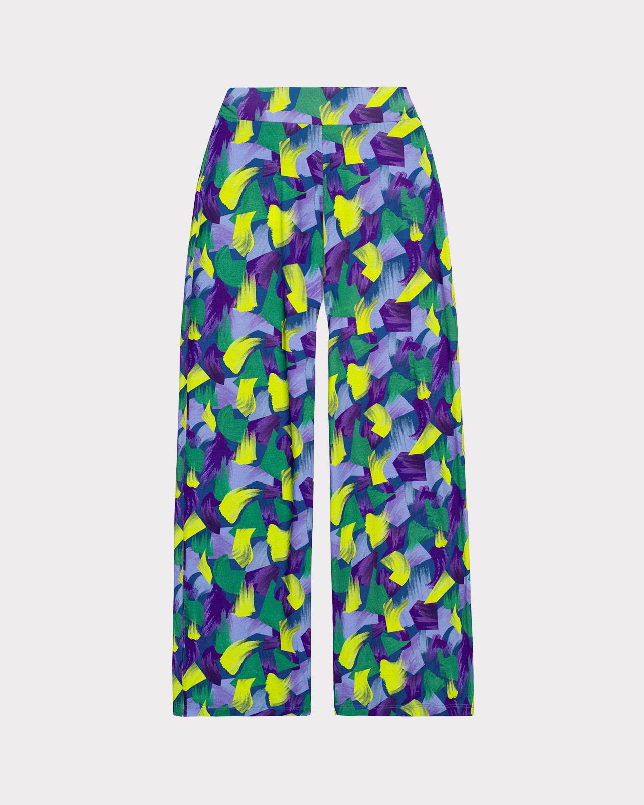 These pull-on palazzo trousers feature a soft elastic waistband and beautifully draped wide legs. Made in Turkey from a smooth viscose blend. Available in four geo prints.