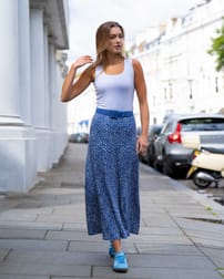 This maxi skirt features a comfortable elastic waistband and a softly draping, regular fit that moves beautifully with you. Detailed with a front shaping seam, a straight seam down the back, and a slightly curved hem for a flattering silhouette. Crafted from 97% viscose, 3% elastane jersey, it delivers gentle stretch and softness. The two-colourway print matches effortlessly with your everyday basics and the Silky collection, making it a capsule wardrobe must-have. Available in espresso and stone, or best-selling bright navy and soft white.