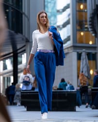 Your go-to for luxury workwear or elevated day dressing with a modern twist. Designed to pair with our Izzy Blazer for a versatile suit to take you to the office and beyond. A high waisted, wide leg trouser that moves with you, providing both comfort and style throughout the day. The fabric weight allows the trousers to drape effortlessly, and the viscose blend means that only minimal pressing is required, the perfect trouser for packing for those weekends or weeks away. To ensure maximum flexibility in terms of leg length, the trousers are made to a 30” inside leg length with deep hems to increase up to 32”