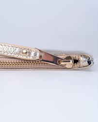 This spacious zip top leather pouch features a large loop pull for easy access and can also be used as a wristlet so you can carry your pouch hands free!