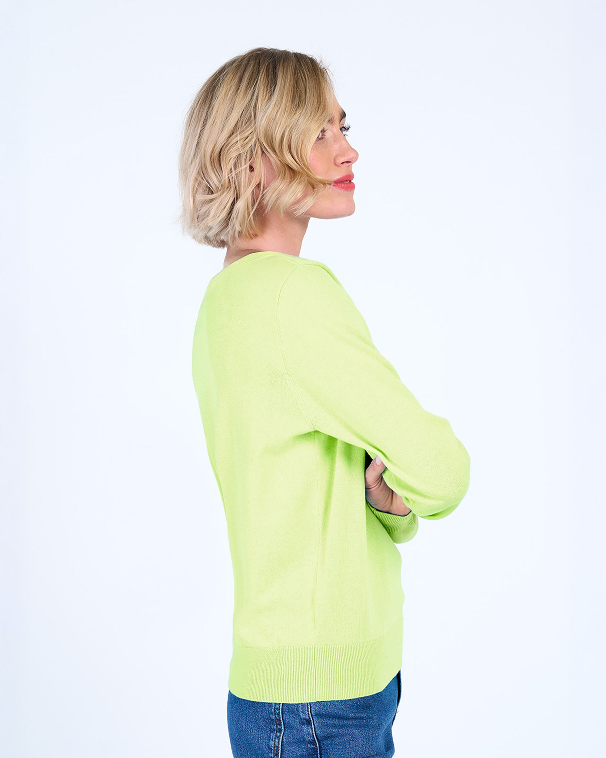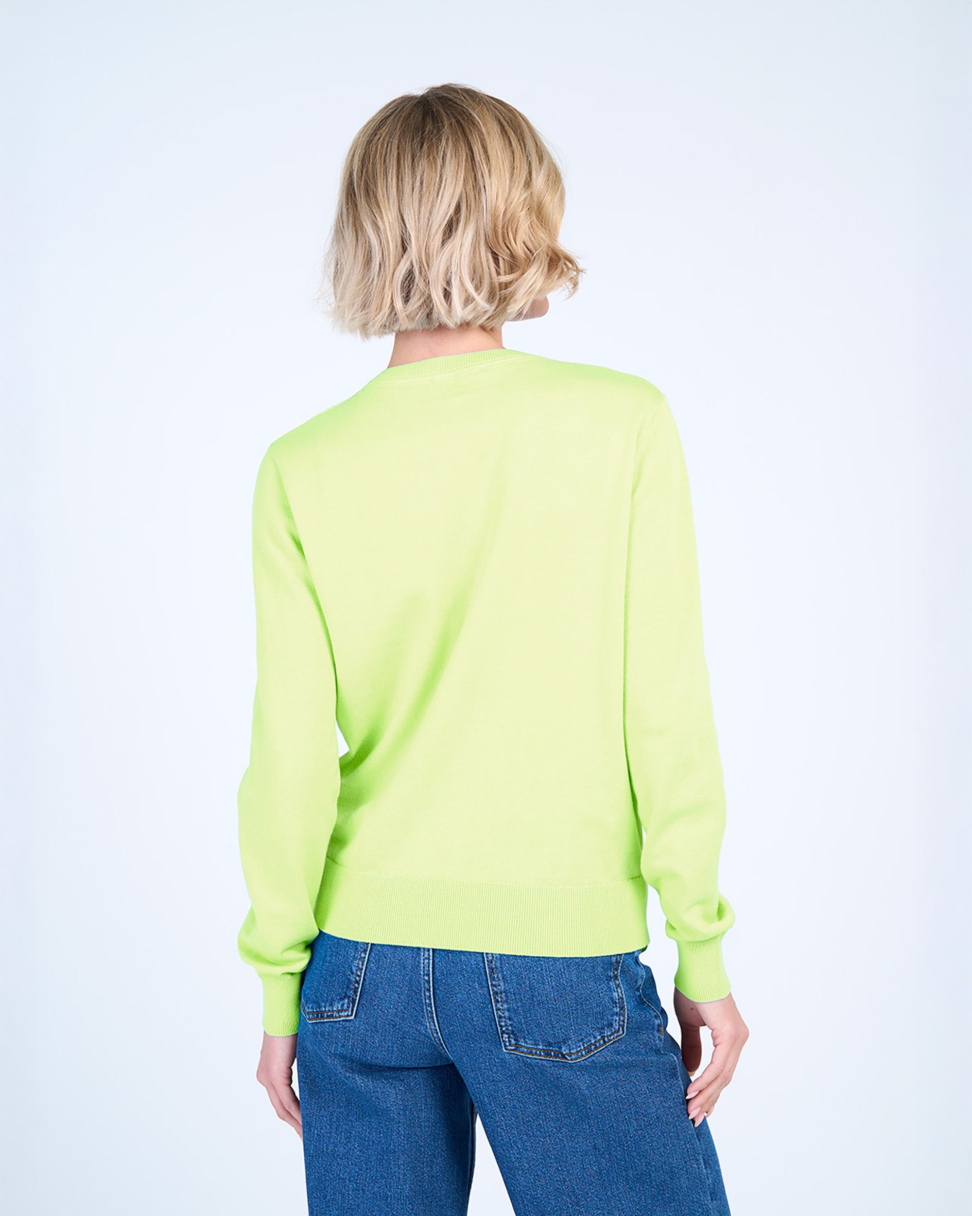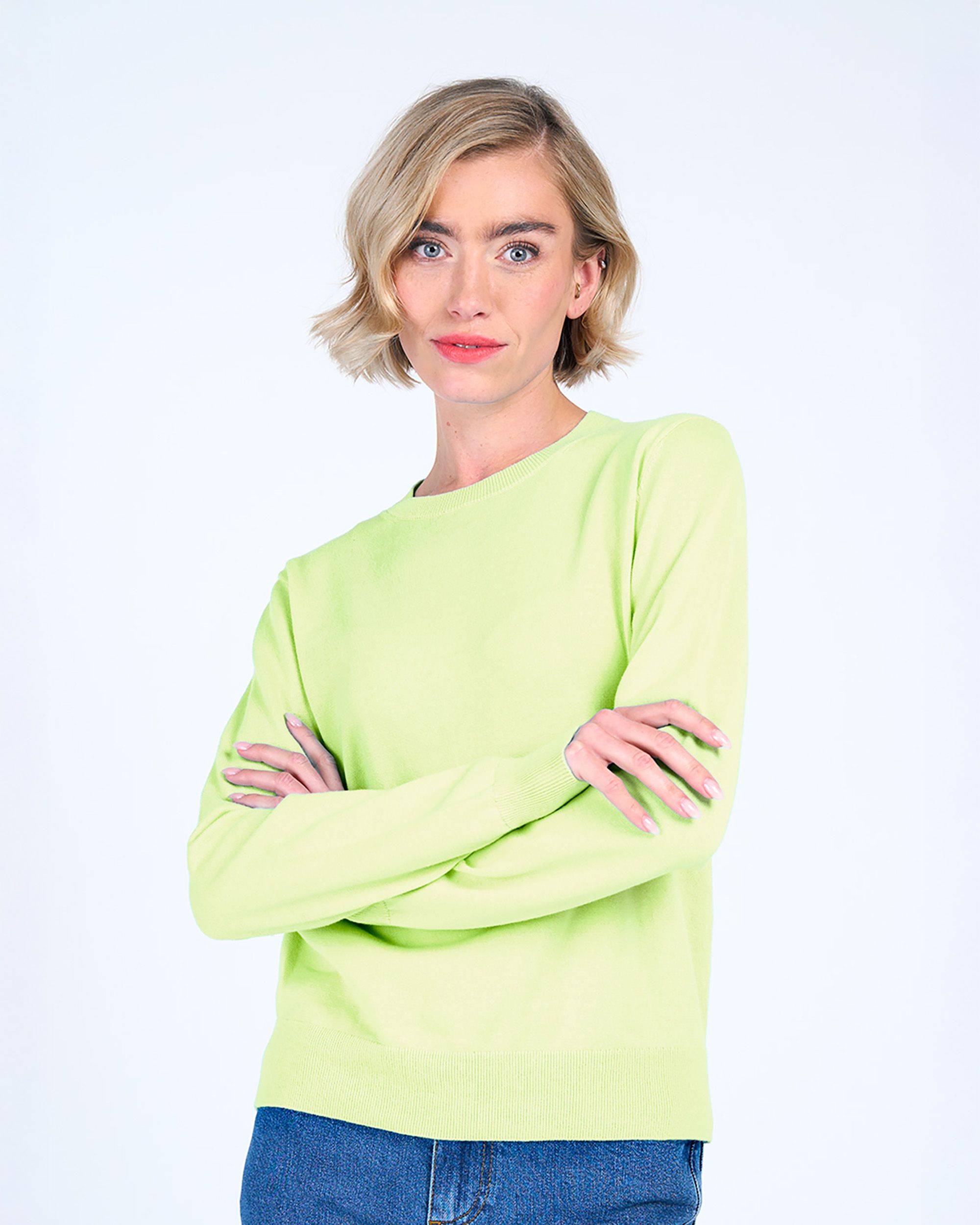 This lightweight crew neck jumper features long sleeves, ribbed cuffs and hem, and a smooth 12-gauge knit. Crafted from 100% cotton.