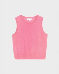 This sleeveless tank top features a classic crew neckline and rib detailing at the hem and neck. Knitted from 100% merino wool.
