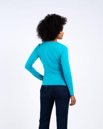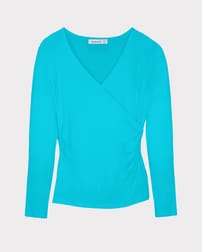 Effortlessly flattering and versatile, this fitted long-sleeved top is designed to elevate your everyday wardrobe. With a faux crossover front and subtle side ruching, it creates a beautifully draped silhouette that flatters the figure. Crafted from luxuriously soft viscose, this piece is good for layering and pairs well with jeans, skirts or trousers making it the perfect staple to see you through the seasons.