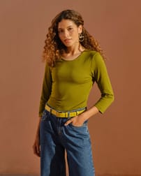 A leather belt with a rectangular buckle, complete with 7 holes for an adjustable fit.
