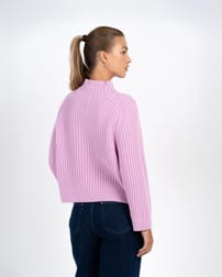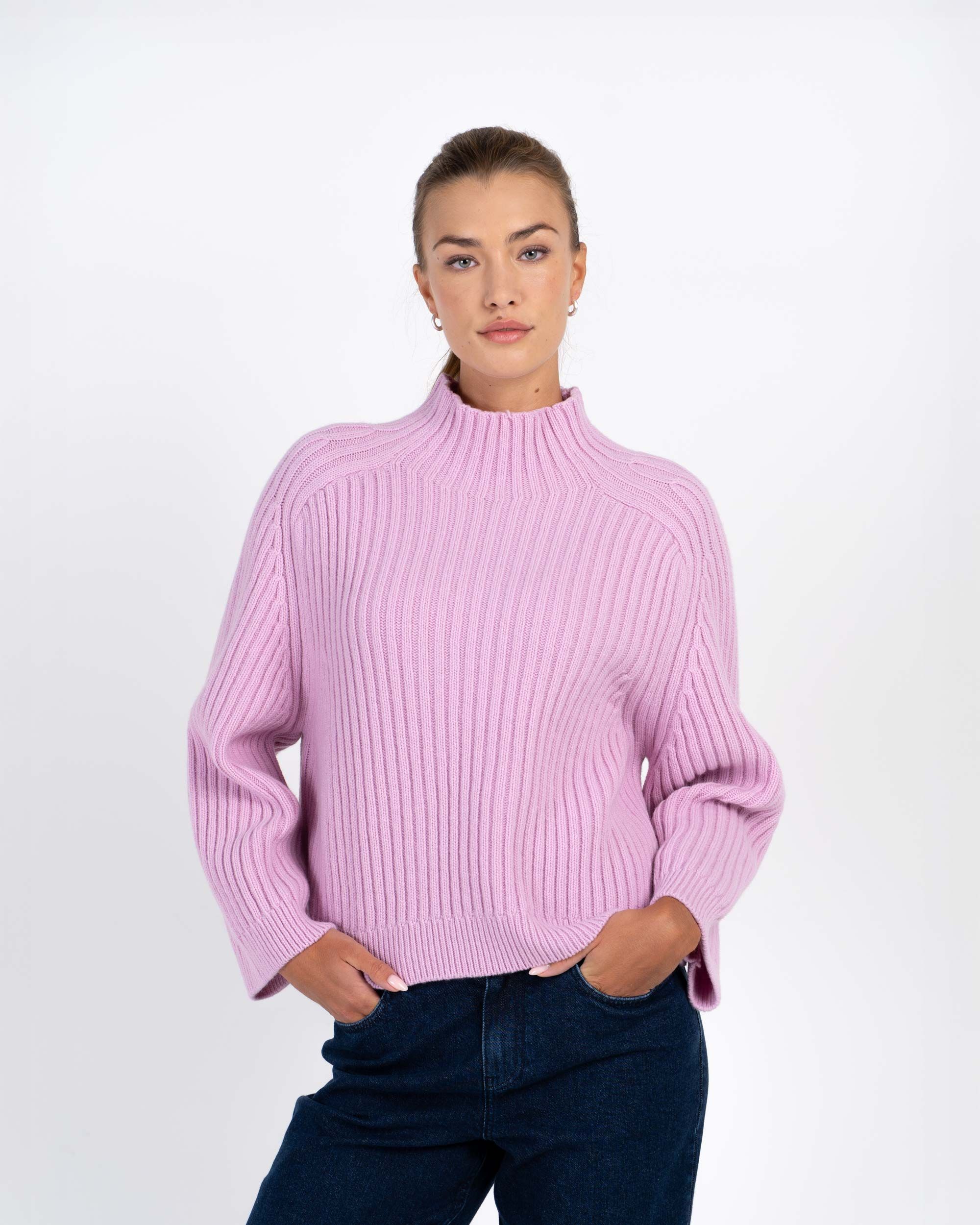 A chunky rib knit made from lambswool and featuring a funnel-shaped high neckline. It has a relaxed, oversized fit that drapes with ease while still feeling modern and refined. Ribbed cuffs and hem add subtle shaping, while the rich texture of the knit ensures it looks as good as it feels.