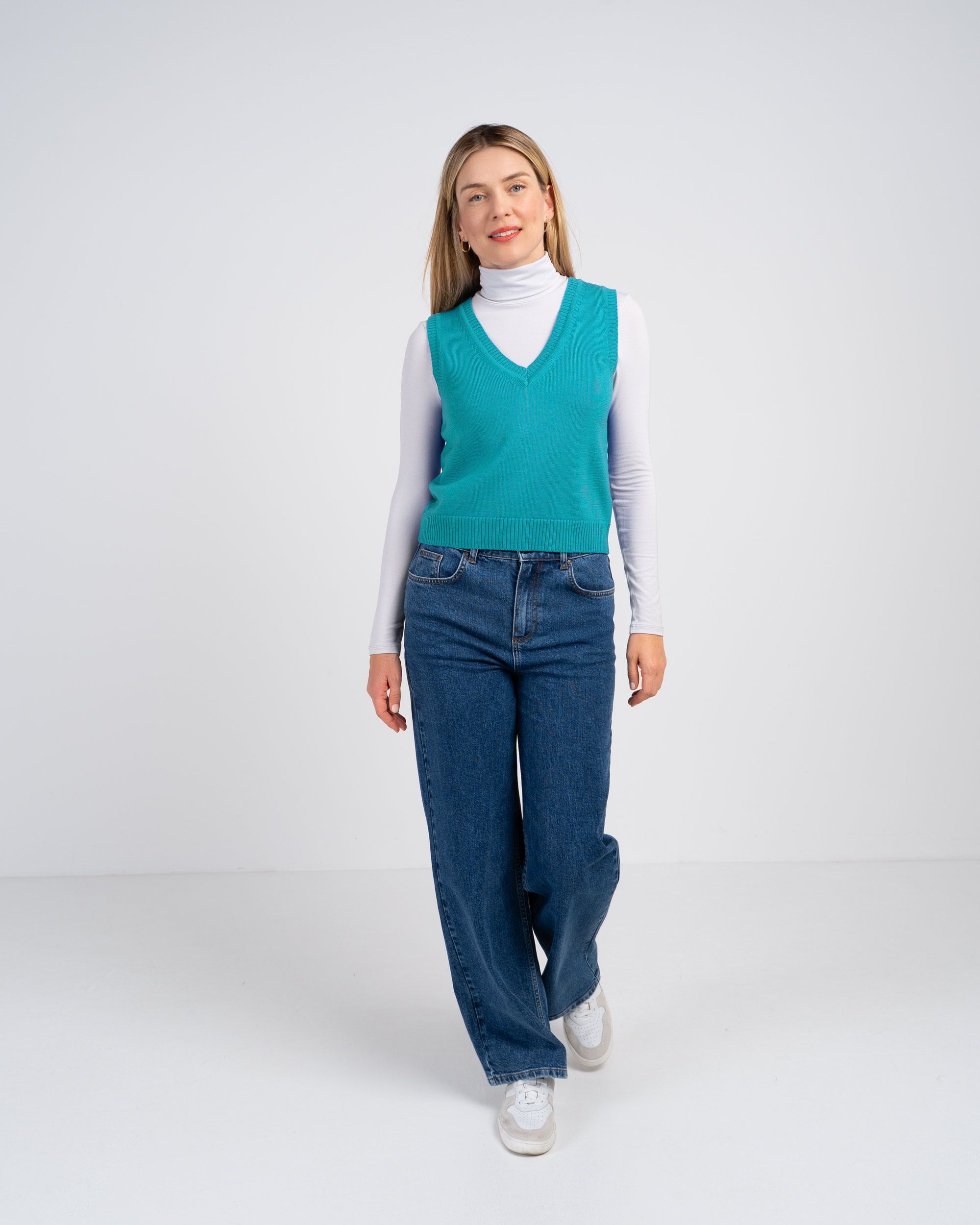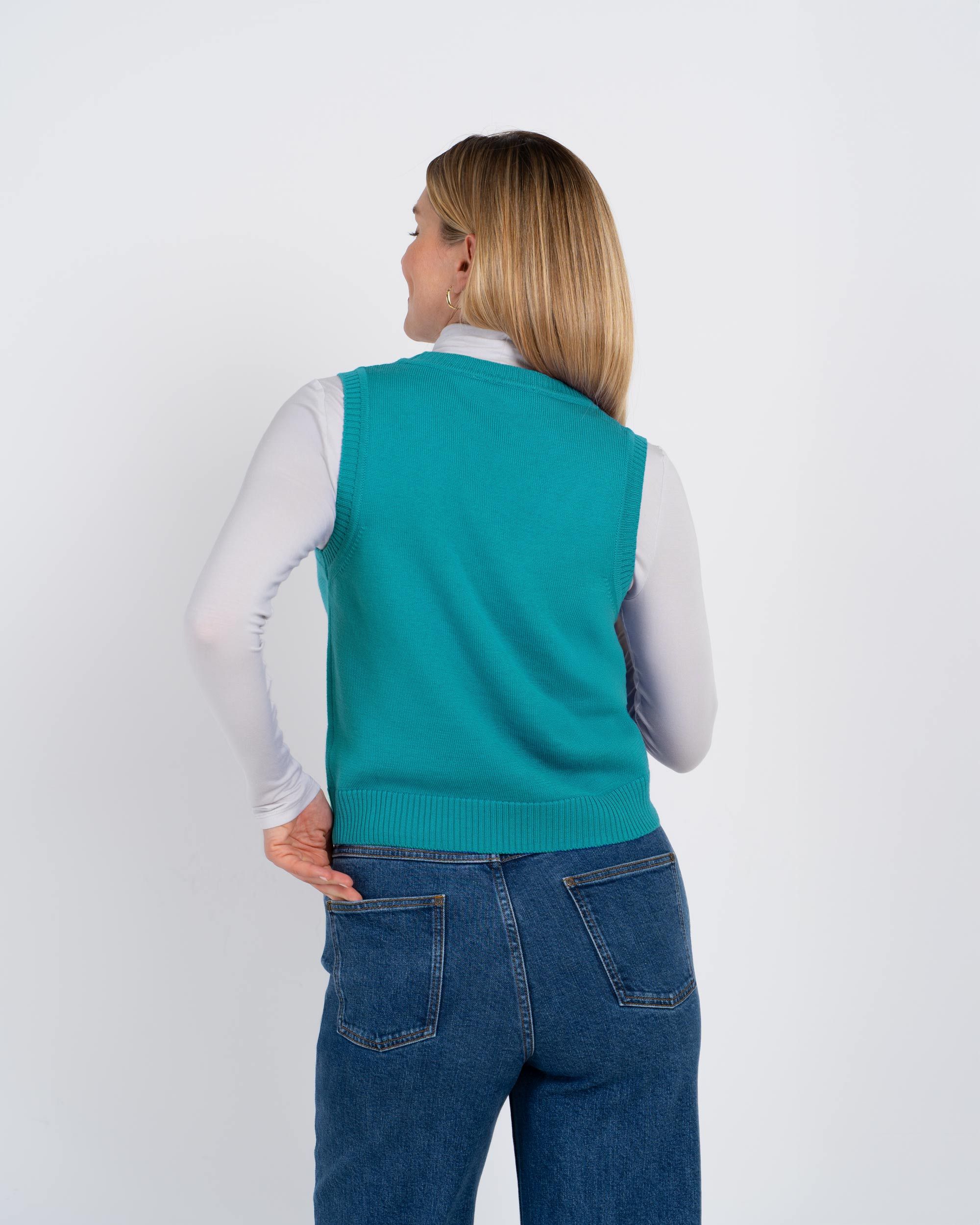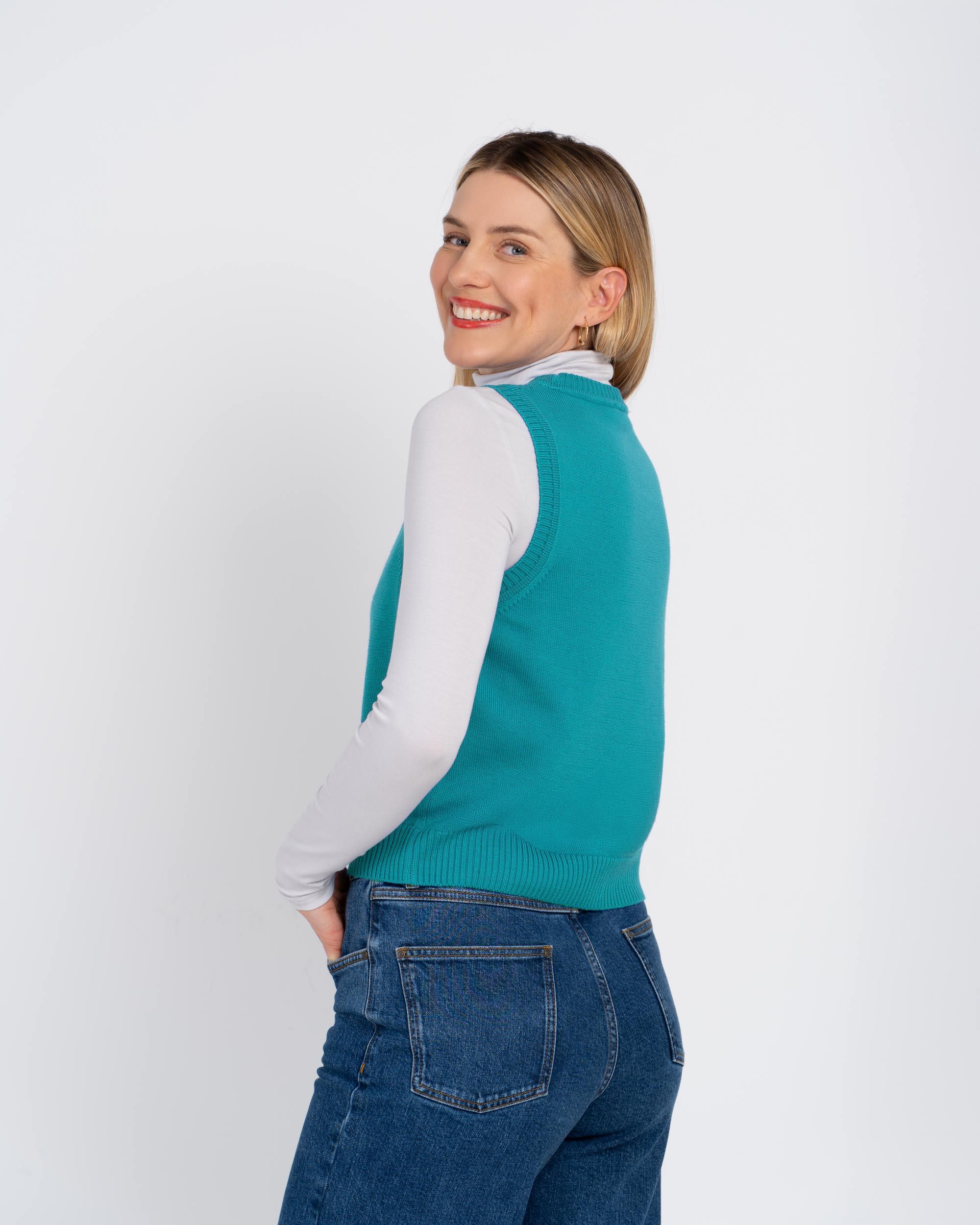 A versatile knit designed for effortless layering, this sleeveless tank brings a touch of modern polish to your everyday wardrobe. The flattering V neckline and straight shape create a clean, timeless silhouette, while ribbed detailing at the hem, neckline and armholes adds a refined finish. Perfect for styling over shirts or under jackets, it brings year round wearability to both casual and tailored looks.