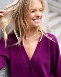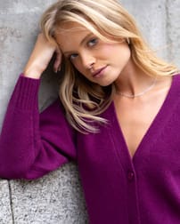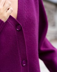 This merino wool cardigan features a flattering V neckline, long sleeves and a straight, boxy shape, it’s finished with dyed-to-match buttons and ribbing along the placket, hem and cuffs for a refined touch. The three-button fastening gives the option to wear it open or closed, making it a versatile layer for every season.
