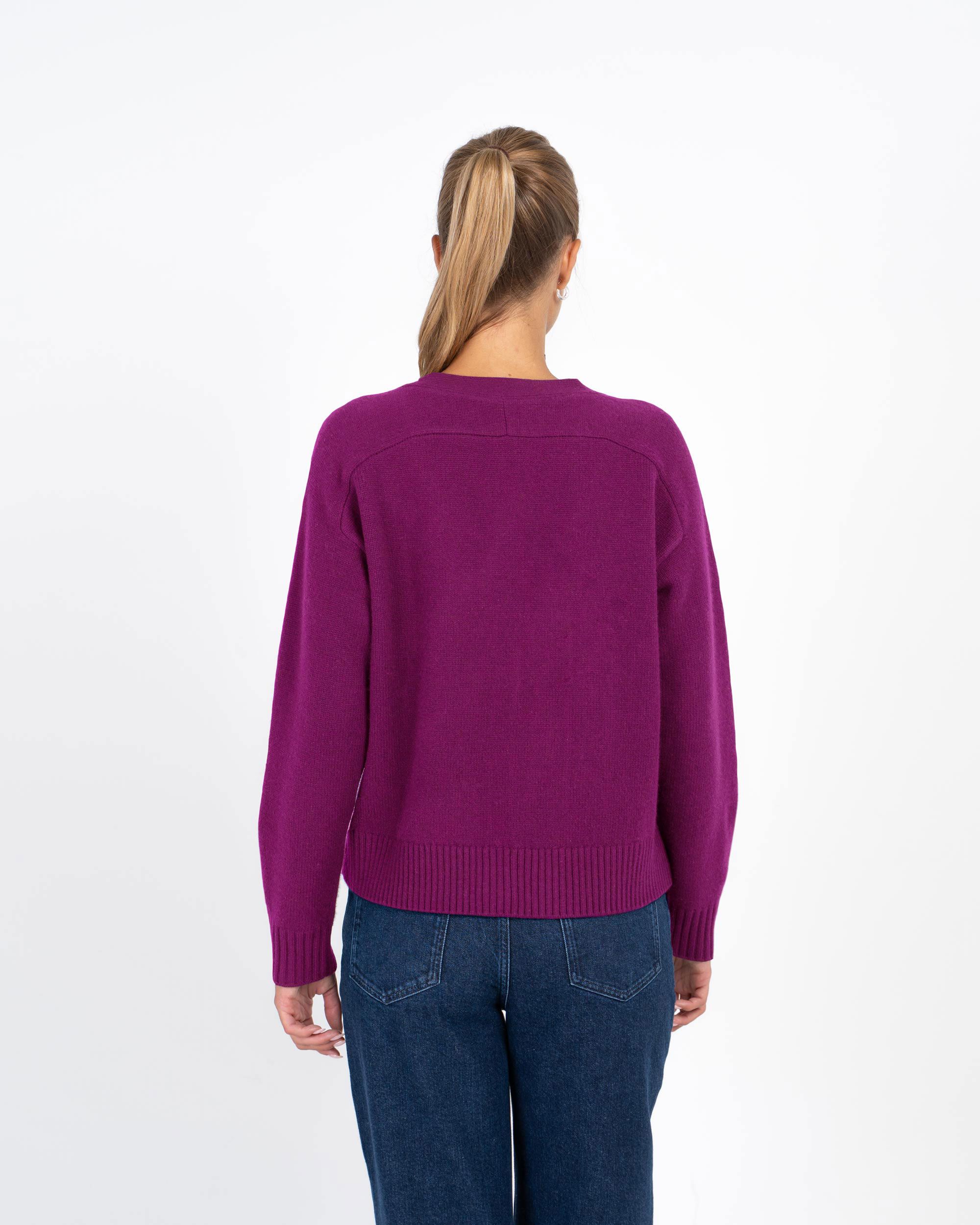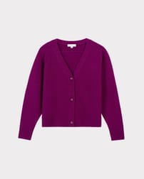 This merino wool cardigan features a flattering V neckline, long sleeves and a straight, boxy shape, it’s finished with dyed-to-match buttons and ribbing along the placket, hem and cuffs for a refined touch. The three-button fastening gives the option to wear it open or closed, making it a versatile layer for every season.