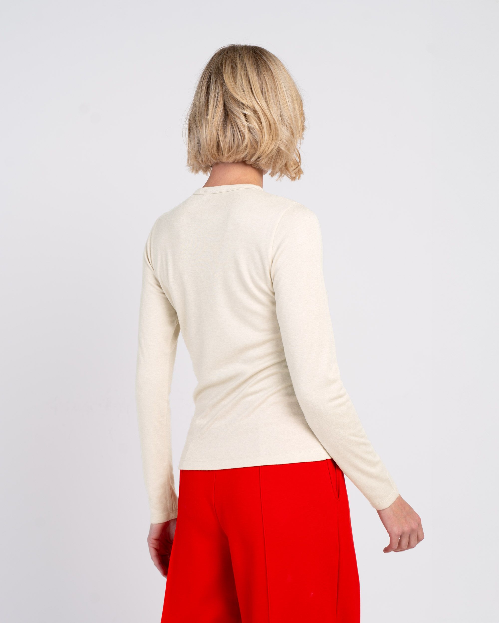 - Subtle rib detail on neckline