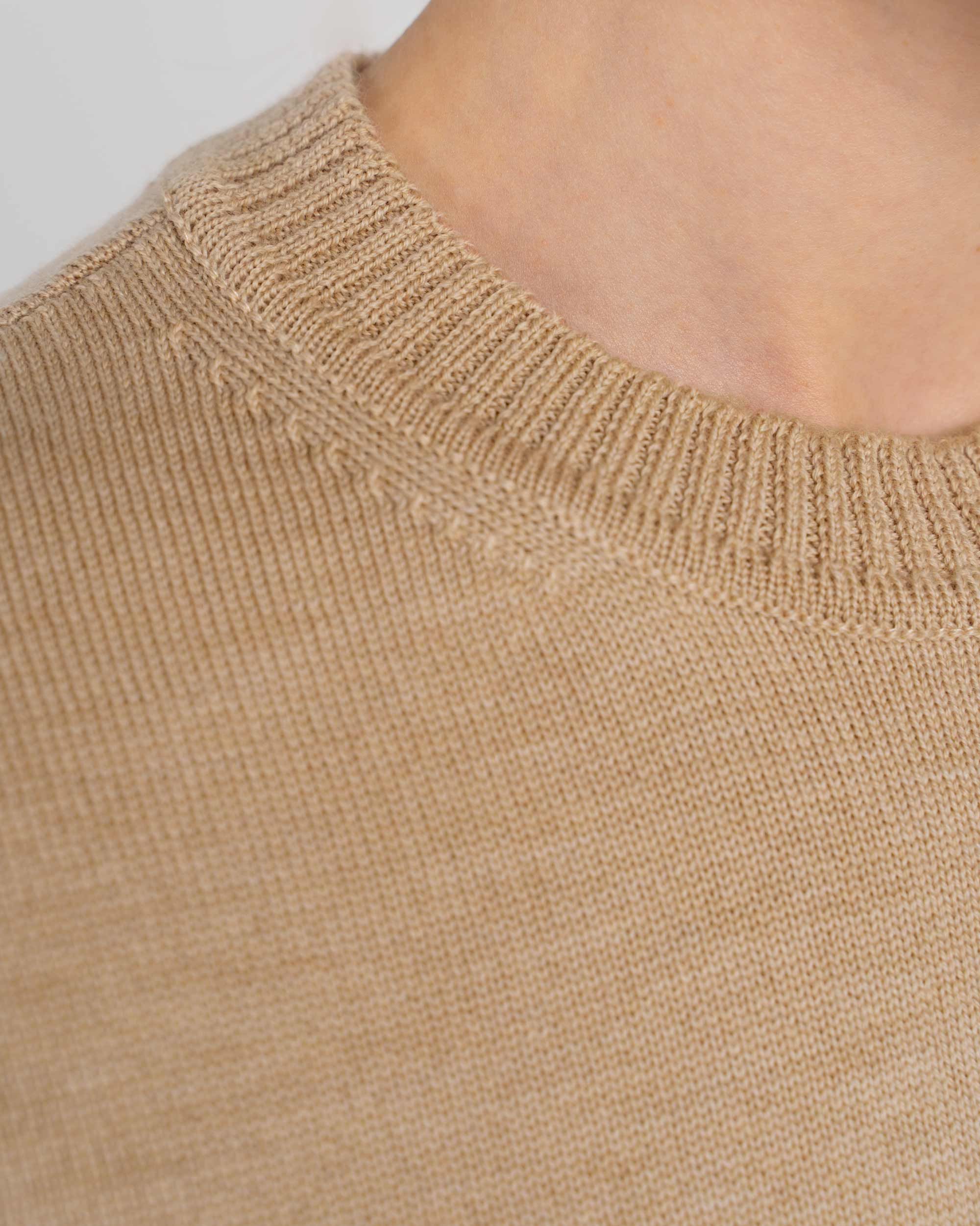 Featuring a classic crew ribbed neckline, long sleeves, and wide ribbed hem and cuffs expertly crafted in fine merino wool, this 7-gauge, fully fashioned piece is naturally soft, breathable, and temperature-regulating. It is perfect for layering.