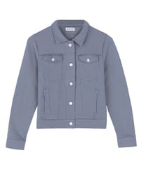 A regular fit, cropped jacket with classic collar detail and functioning breast pockets and metal button detailing throughout. Complete with full length sleeves, button cuff and placket and regular side slip pockets.