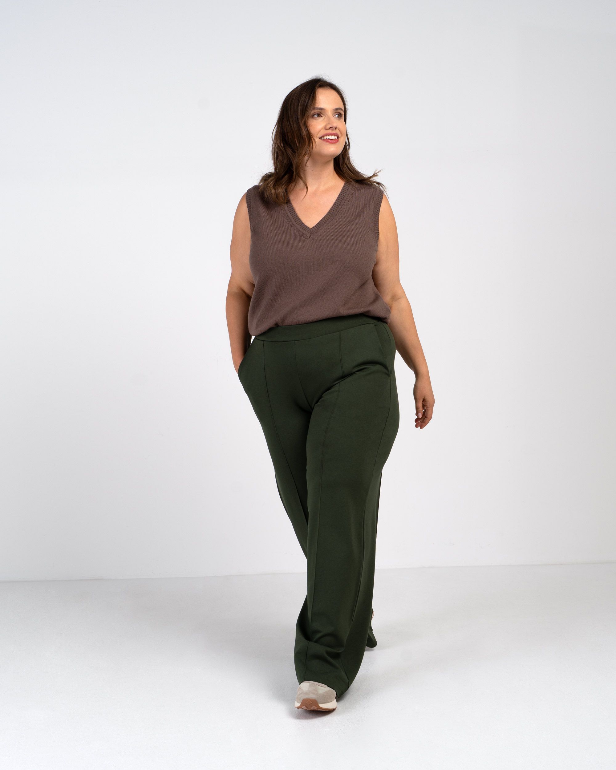 These easy pull-on trousers are crafted in our ponte fabric and offer just the right amount of stretch for comfort with a thicker, more structured feel that holds its shape wear after wear. Designed with a flattering wide straight leg, elastic waistband and practical front pockets, whilst the front seaming and pin tuck detail create a lengthening effect.