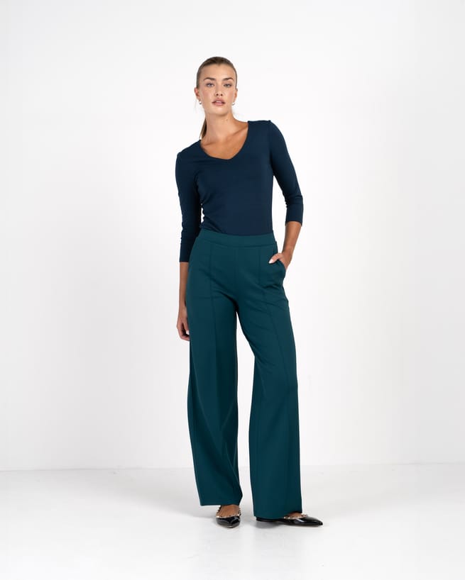 These easy pull-on trousers are crafted in our ponte fabric and offer just the right amount of stretch for comfort with a thicker, more structured feel that holds its shape wear after wear. Designed with a flattering wide straight leg, elastic waistband and practical front pockets, whilst the front seaming and pin tuck detail create a lengthening effect.