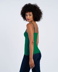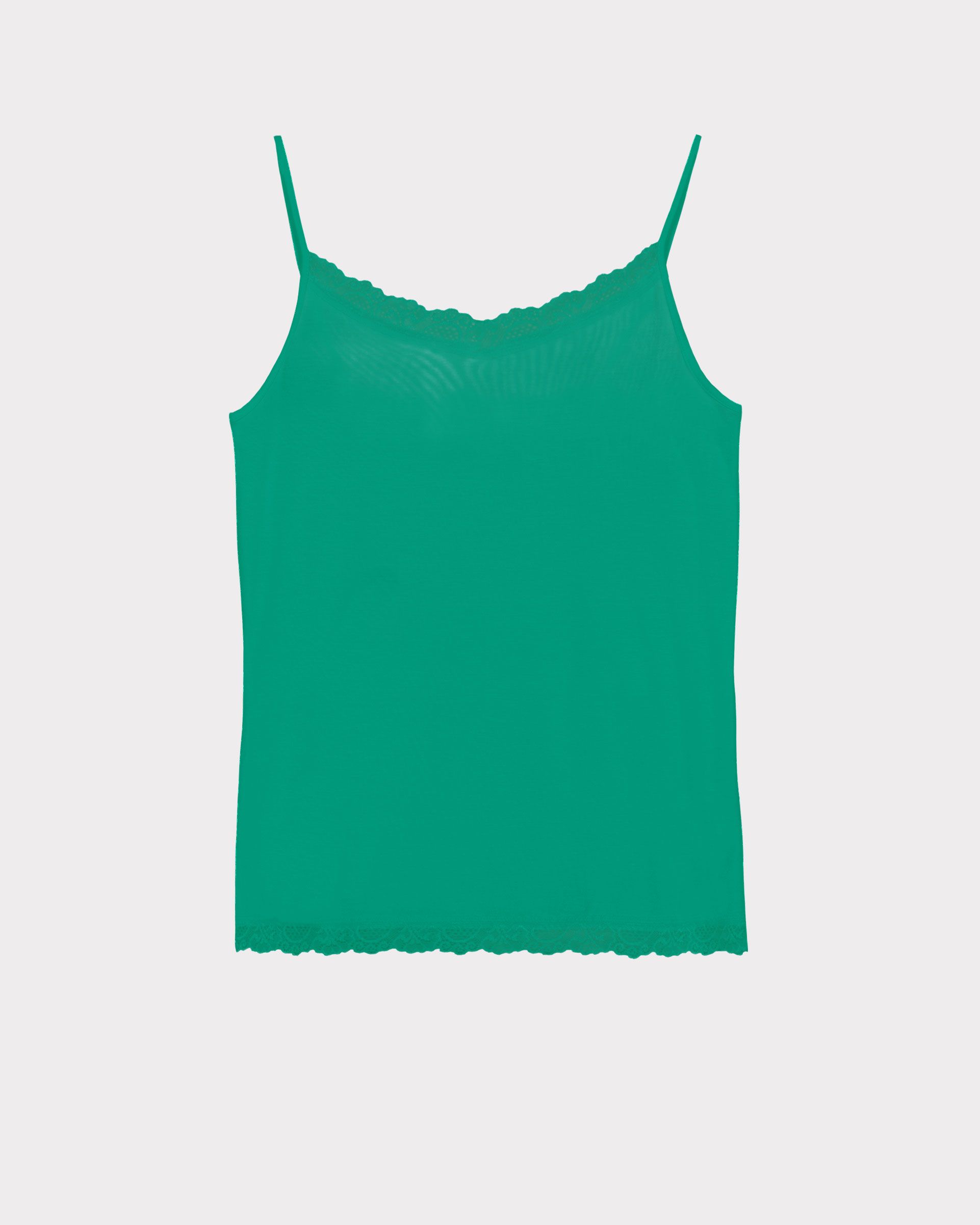 A fitted V‑neck camisole trimmed with delicate lace, supported by adjustable spaghetti straps. Crafted from a substantial viscose elastane blend, the fabric is soft with stretch, offering recovery after washing. Ideal for layering throughout the year, it teams elegantly with skirts, jeans or trousers.
