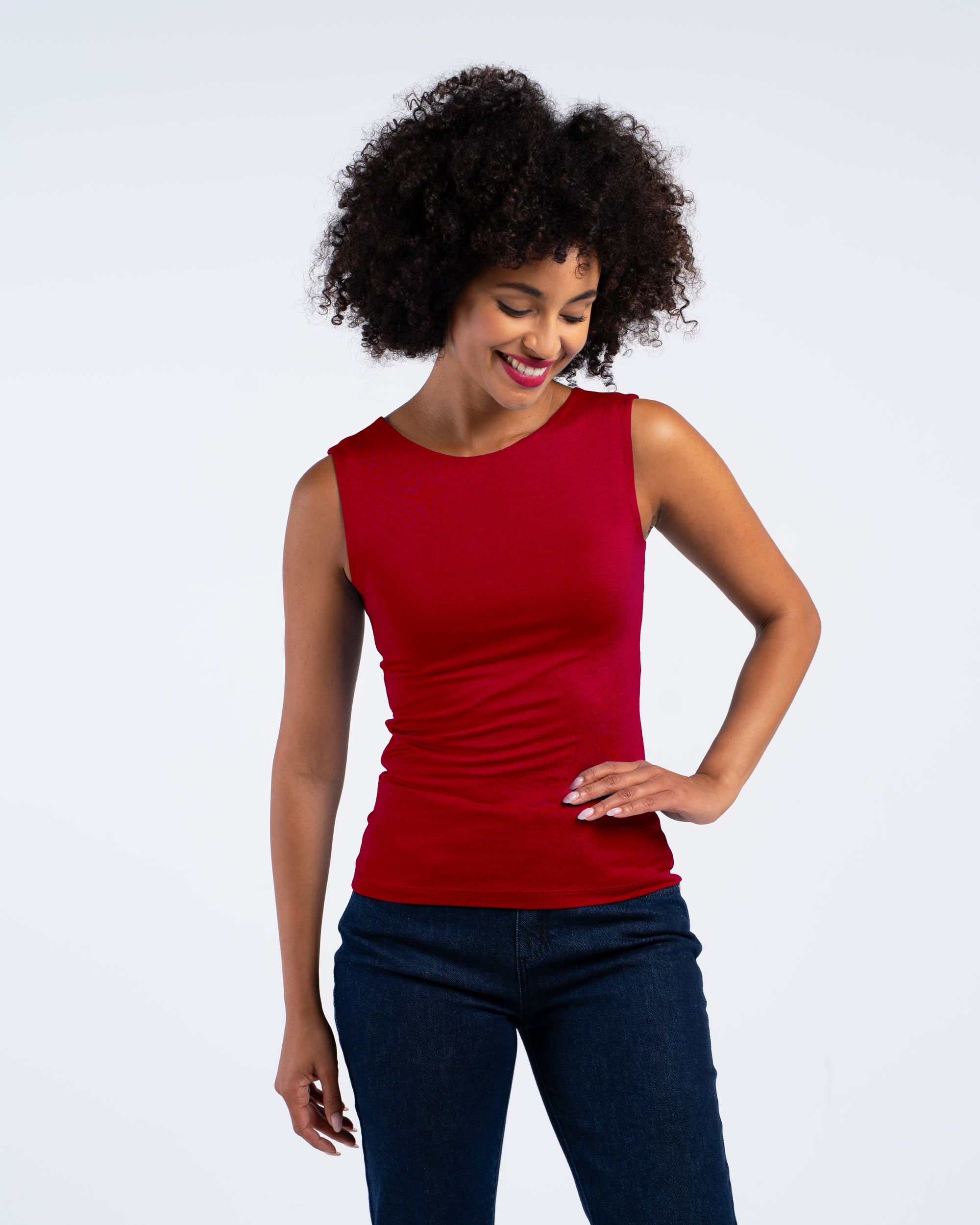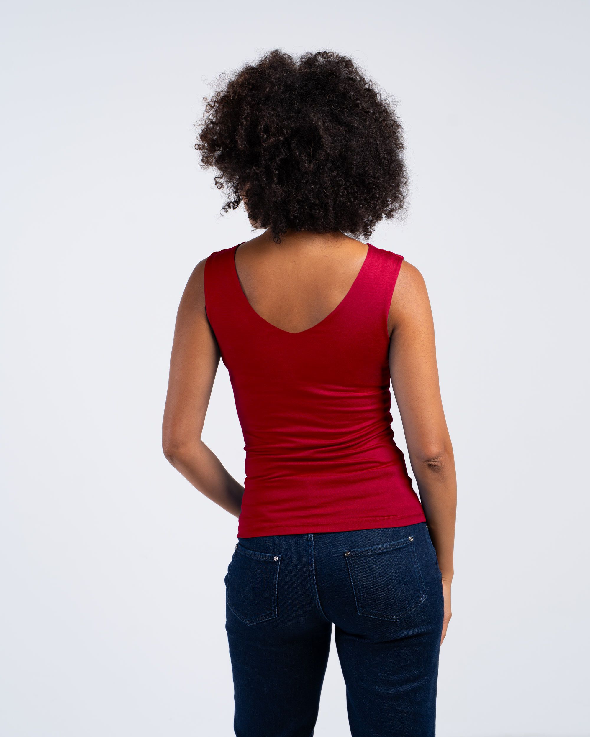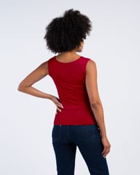This reversible fitted top offers two ways to wear for instant versatility. Crafted from a soft 97% viscose and 3% elastane blend, it boasts comfortable stretch, gentle drape, and excellent shape recovery.