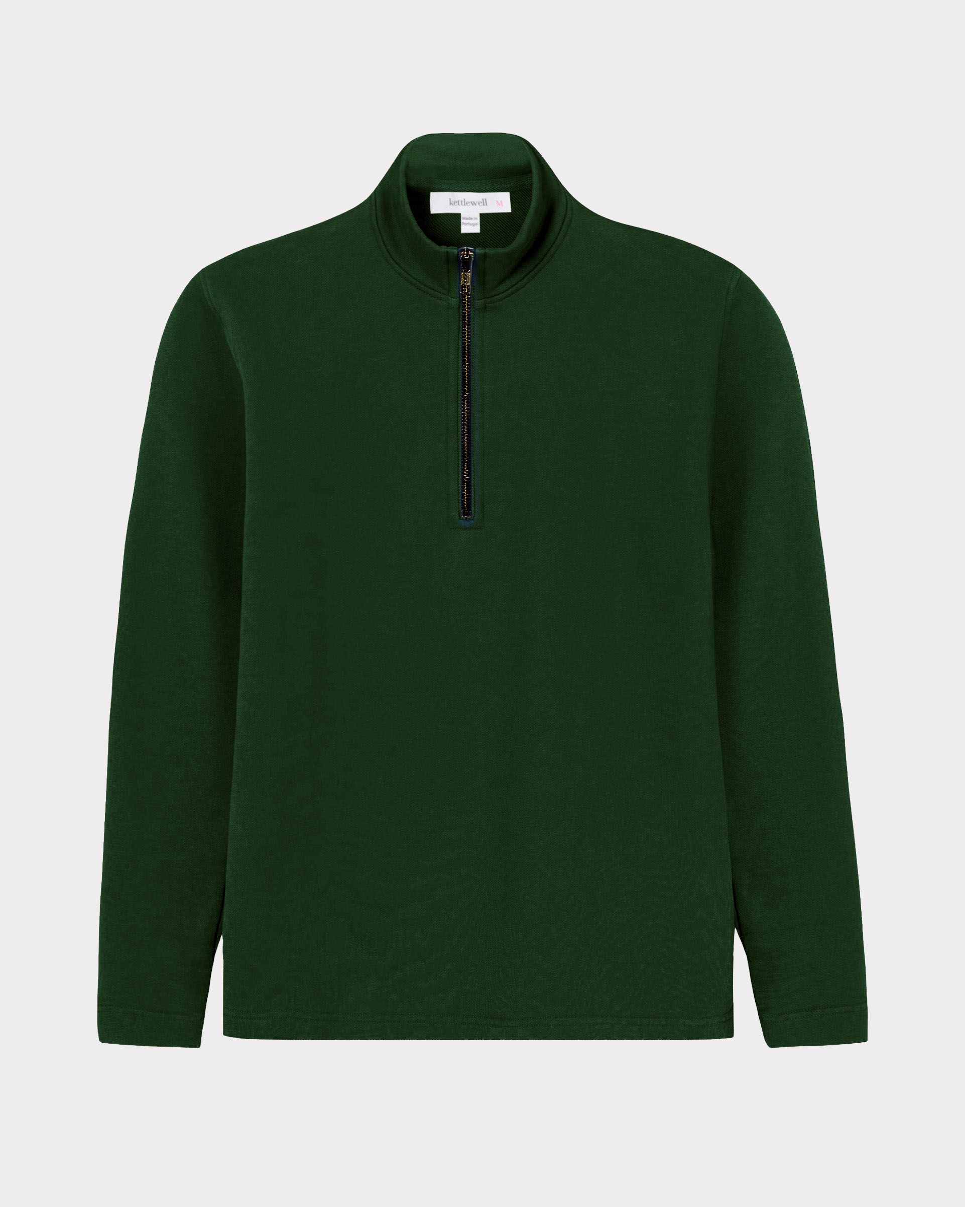 A regular‑fit, long‑sleeved sweater with a neat mock neck and ¼‑zip front, ideal for transitional days. The heavyweight loop‑back cotton offers warmth and comfort, with a smooth exterior and cosy looped interior. Ribbed cuffs, neckline and twin‑needle hem give a structured, relaxed shape, falling slightly over the hips with side‑slips for ease. Perfect for layering and keeping warm, it goes beautifully with the matching jogger.