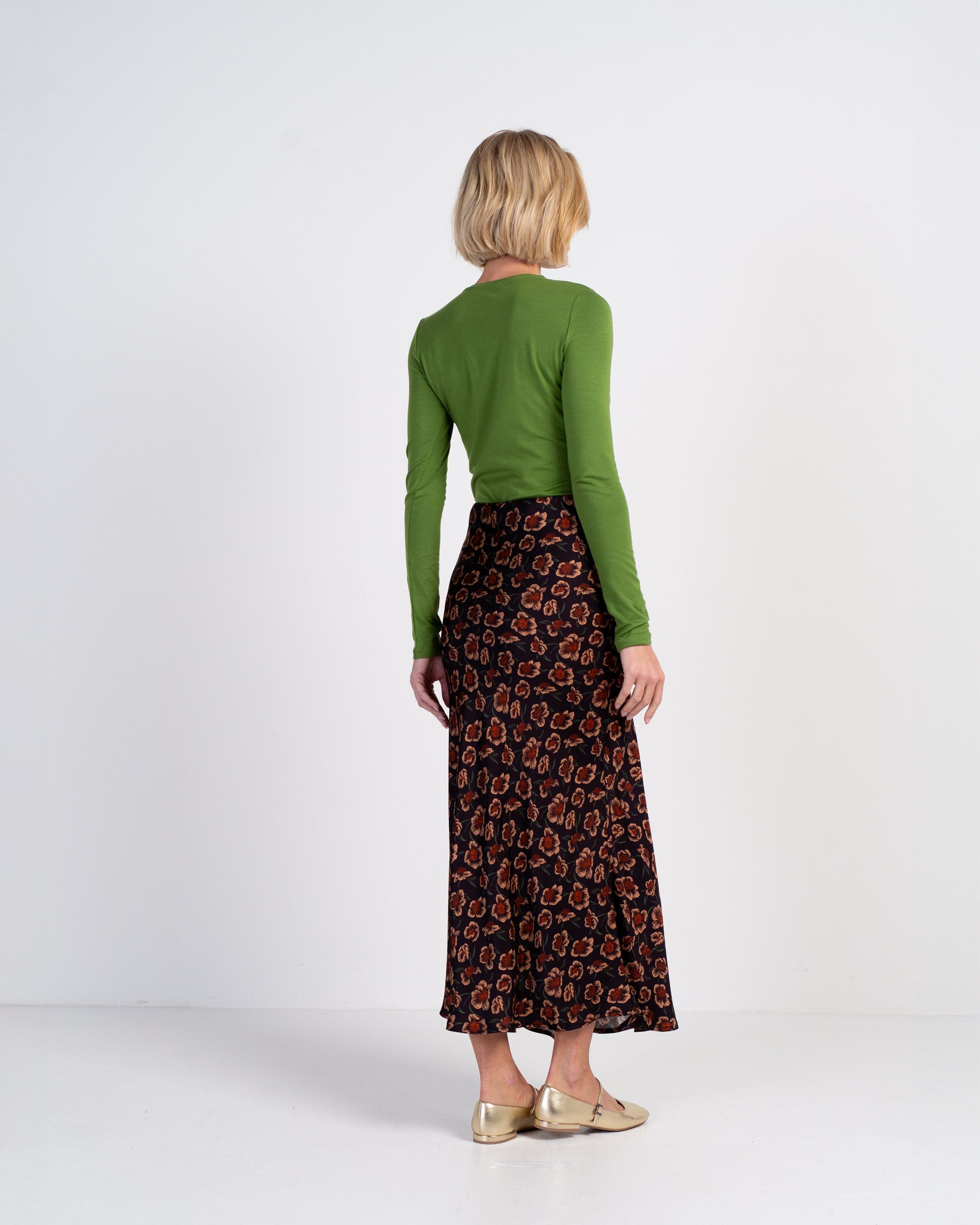 An elegant bias-cut skirt in a floral print design that brings effortless sophistication to party and occasion dressing. Falling to a flattering mid-length with a centre back length of 94cm, it skims the figure beautifully to create a smooth, fluid silhouette that moves gracefully with every step. Its understated design makes it a true wardrobe classic, easily styled up for evening wear or paired back for relaxed elegance.