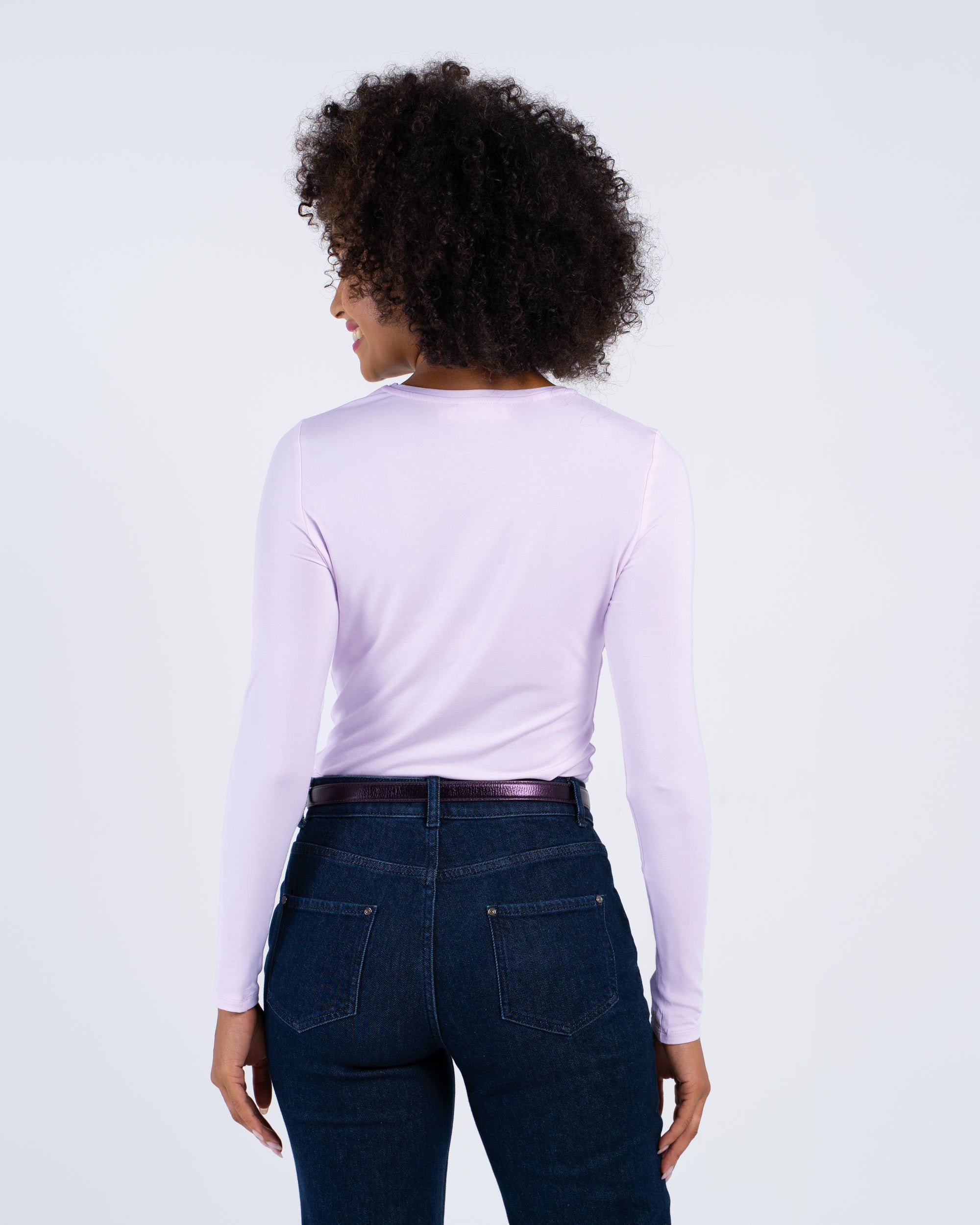 This fitted top, featuring a classic crew neck, long sleeves, and a longer length for superb coverage, is single layer and stitched on the inside for a polished finish making it perfect for layering. Made from a fine modal-elastane blend, it’s beautifully smooth, lightweight, and breathable. It pairs seamlessly with skirts, jeans, or trousers. A perennial customer favourite, year after year.