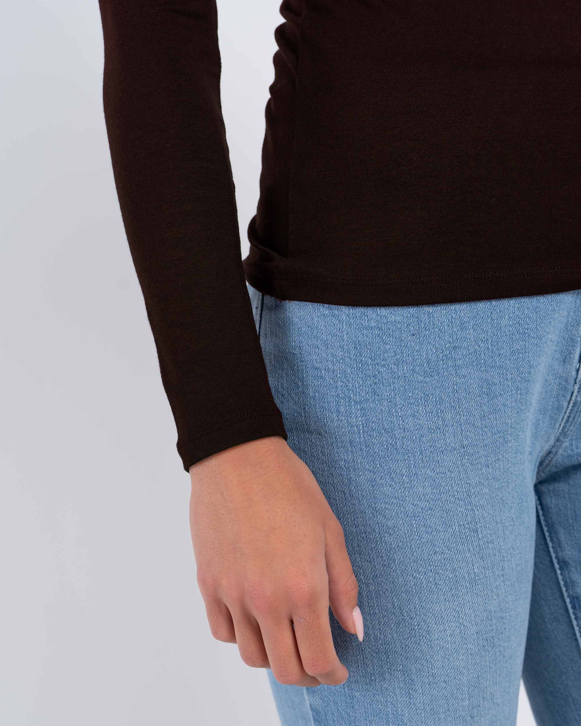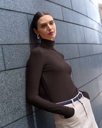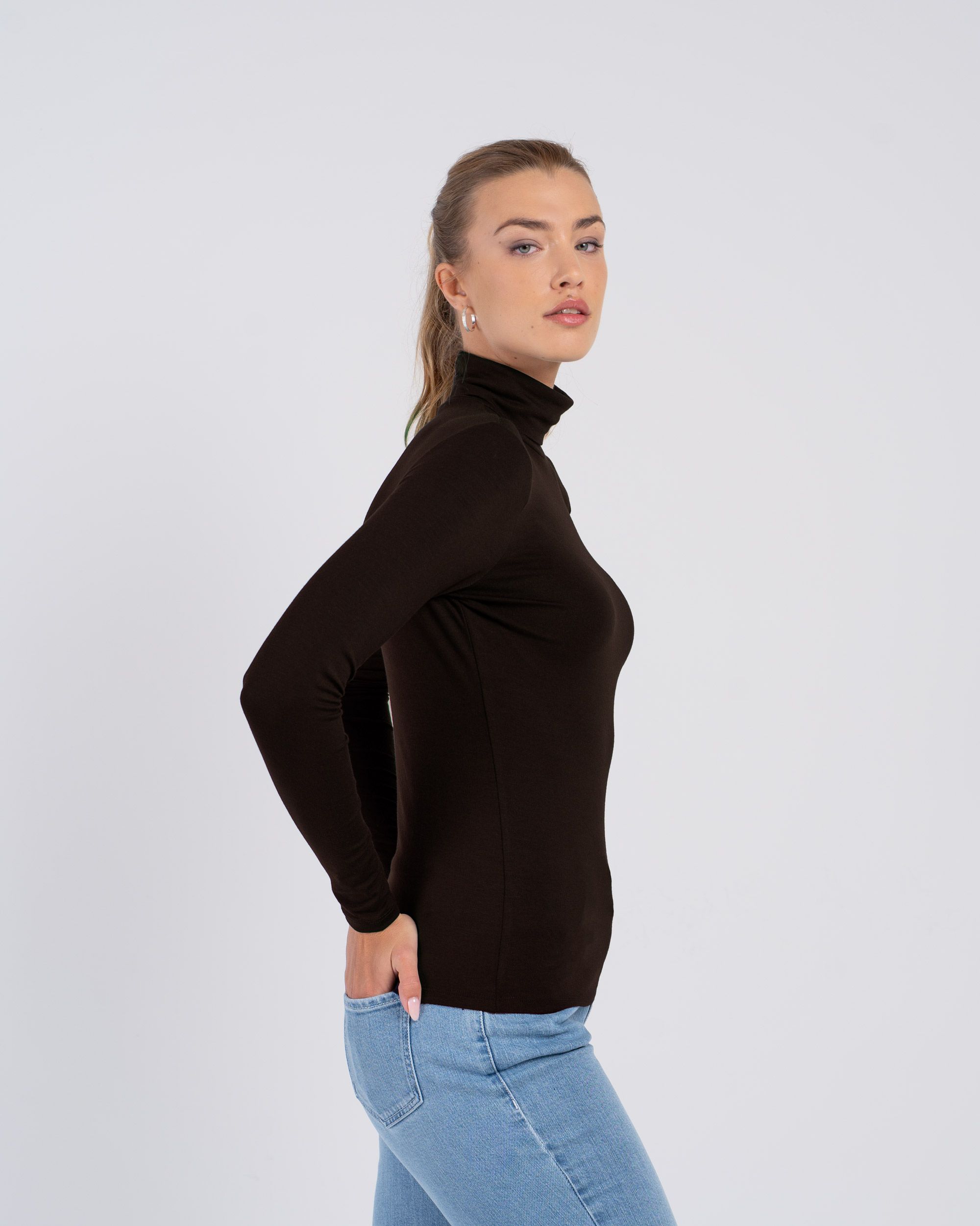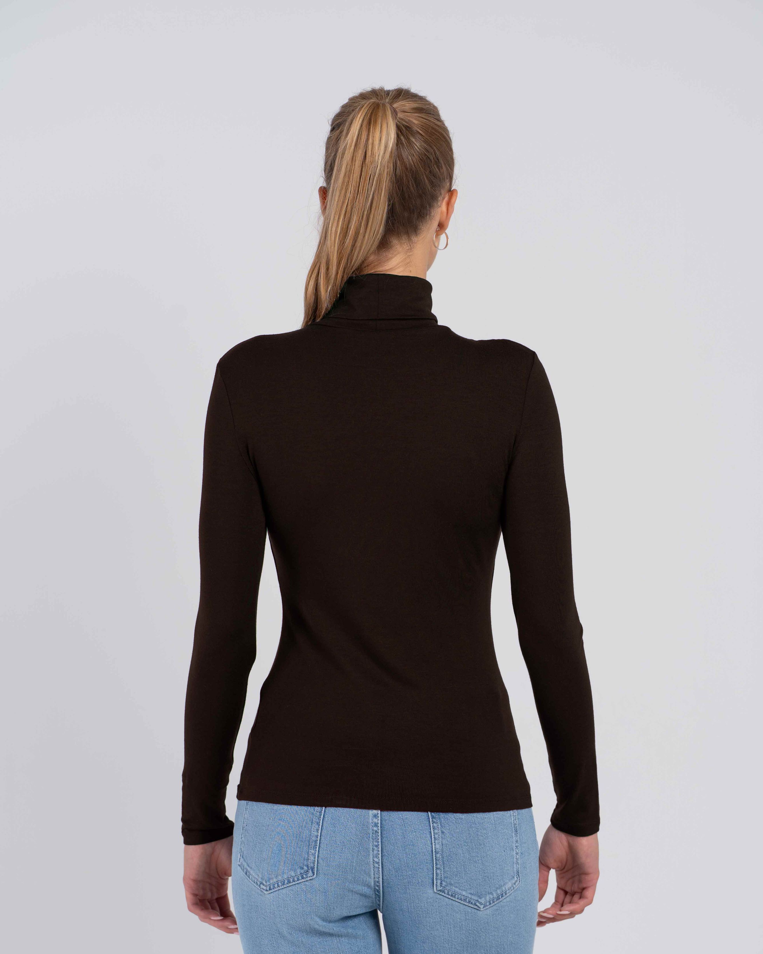 This fitted roll neck top, crafted from a smooth and lightweight modal-elastane blend, features long sleeves and a longer length. Our best-selling product year after year.