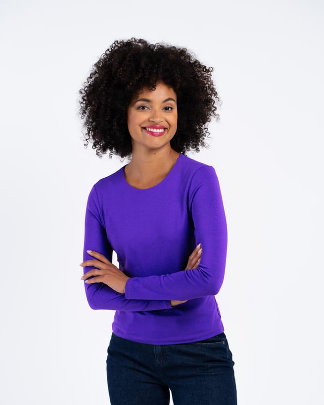 Enjoy effortless layering with this fitted scoop neck top featuring long sleeves and a longer length, crafted from our signature silky modal-elastane blend. The smooth, lightweight fabric gently skims the body for a slinky, comfortable fit. It is perfect beneath knits or styled solo with skirts, jeans, or trousers.