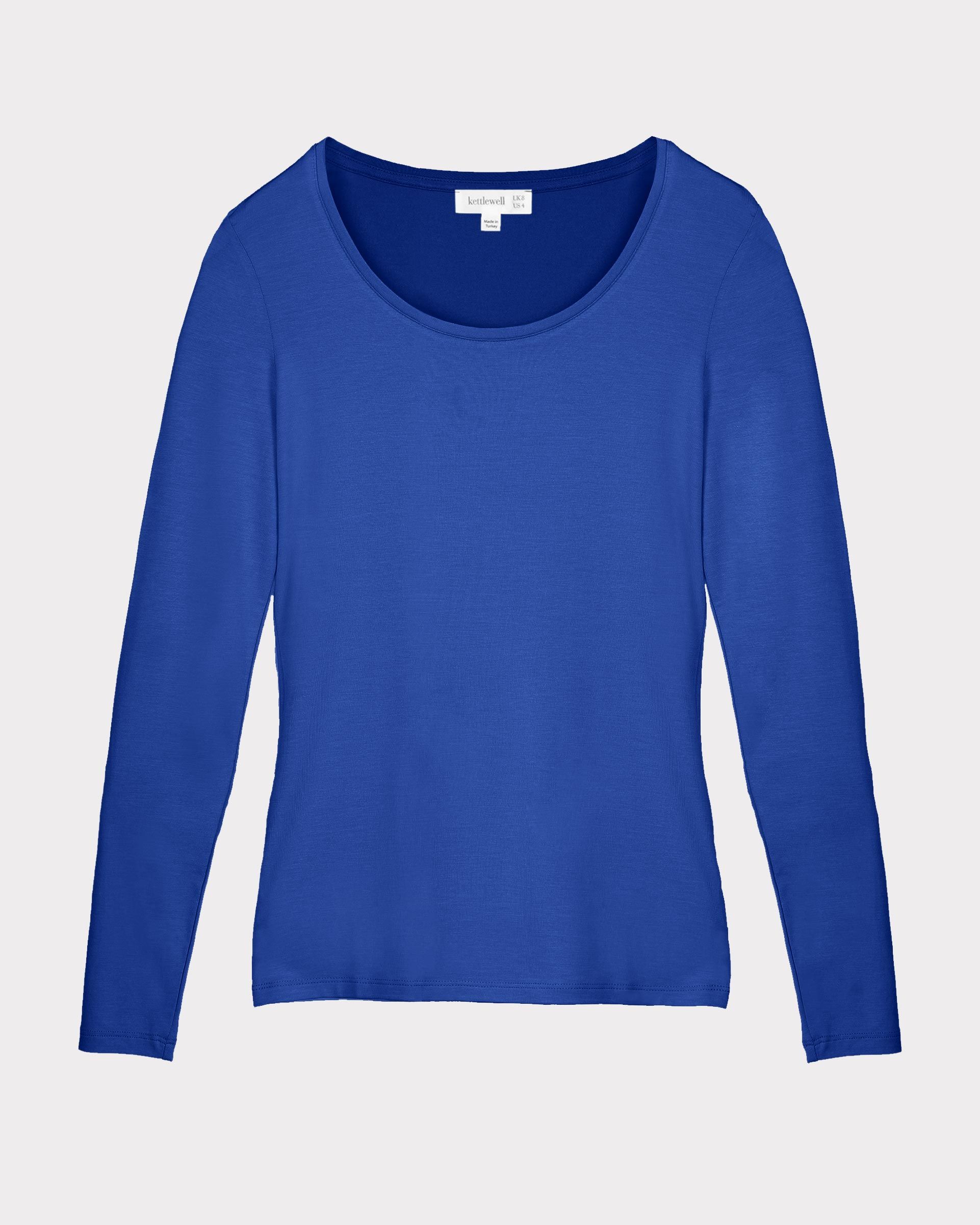Enjoy effortless layering with this fitted scoop neck top featuring long sleeves and a longer length. Crafted from our signature silky modal-elastane blend, the smooth, lightweight fabric gently skims the body for a slinky, comfortable fit. Its single-layer design means it sits neatly under other pieces without bulk making it perfect for layering under ;knits or styled solo with skirts, jeans, or trousers.