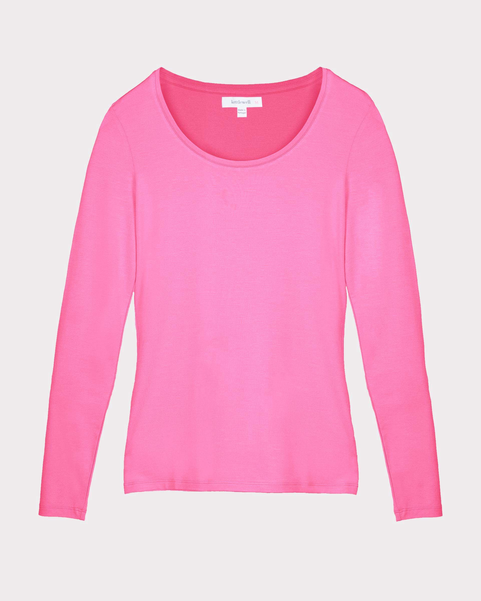 Enjoy effortless layering with this fitted scoop neck top featuring long sleeves and a longer length. Crafted from our signature silky modal-elastane blend, the smooth, lightweight fabric gently skims the body for a slinky, comfortable fit. Its single-layer design means it sits neatly under other pieces without bulk making it perfect for layering under ;knits or styled solo with skirts, jeans, or trousers.