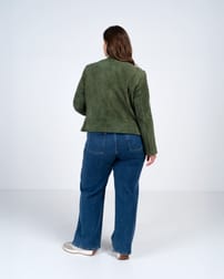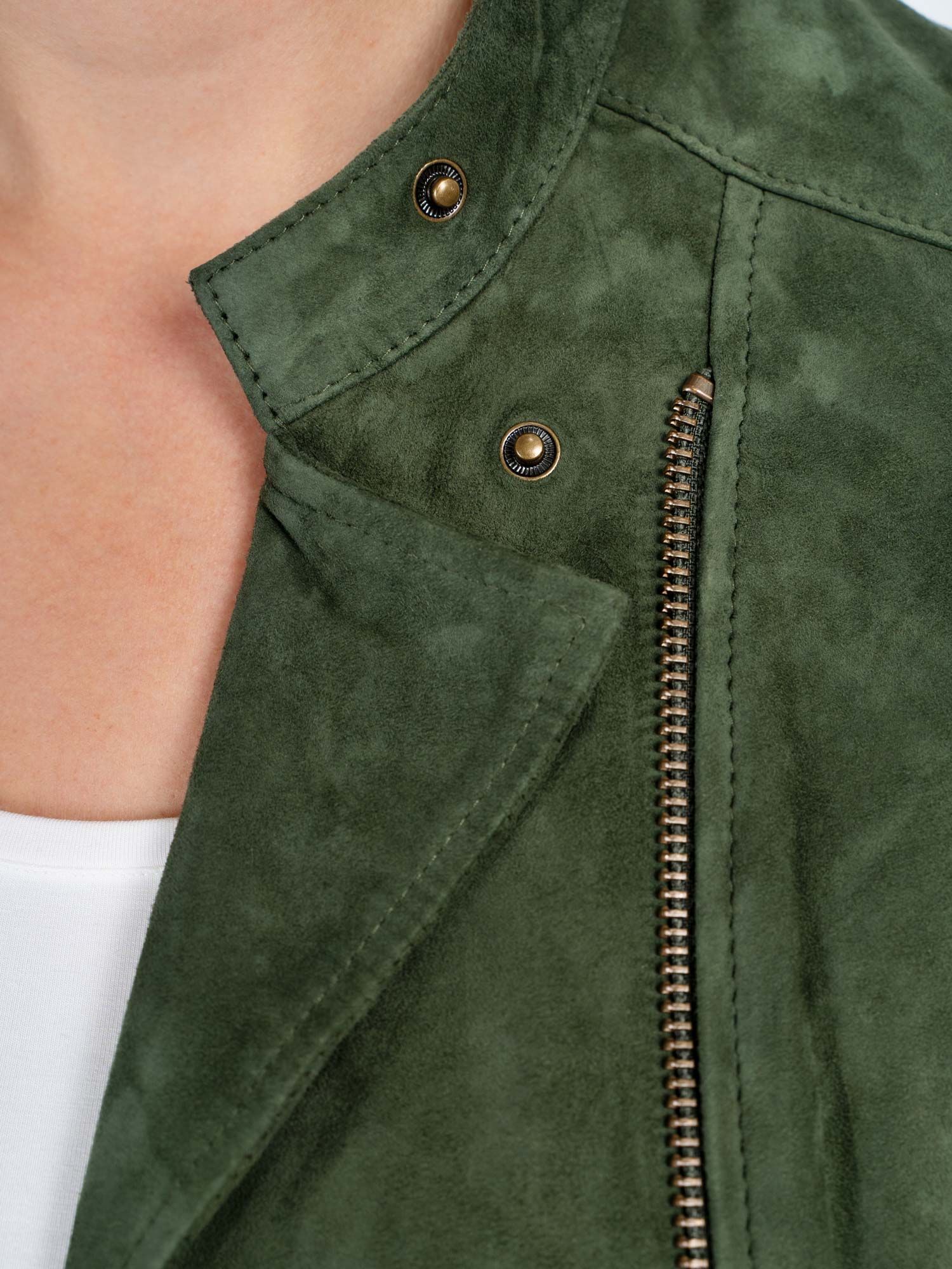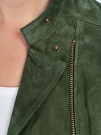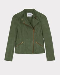 A classic biker jacket cut from 100% real suede with an angled front zip, zipped sleeves, subtle panelling and seam detailing, gently shaping in at the waist. The zip pockets add a practical touch.