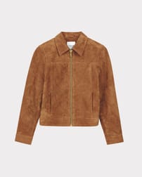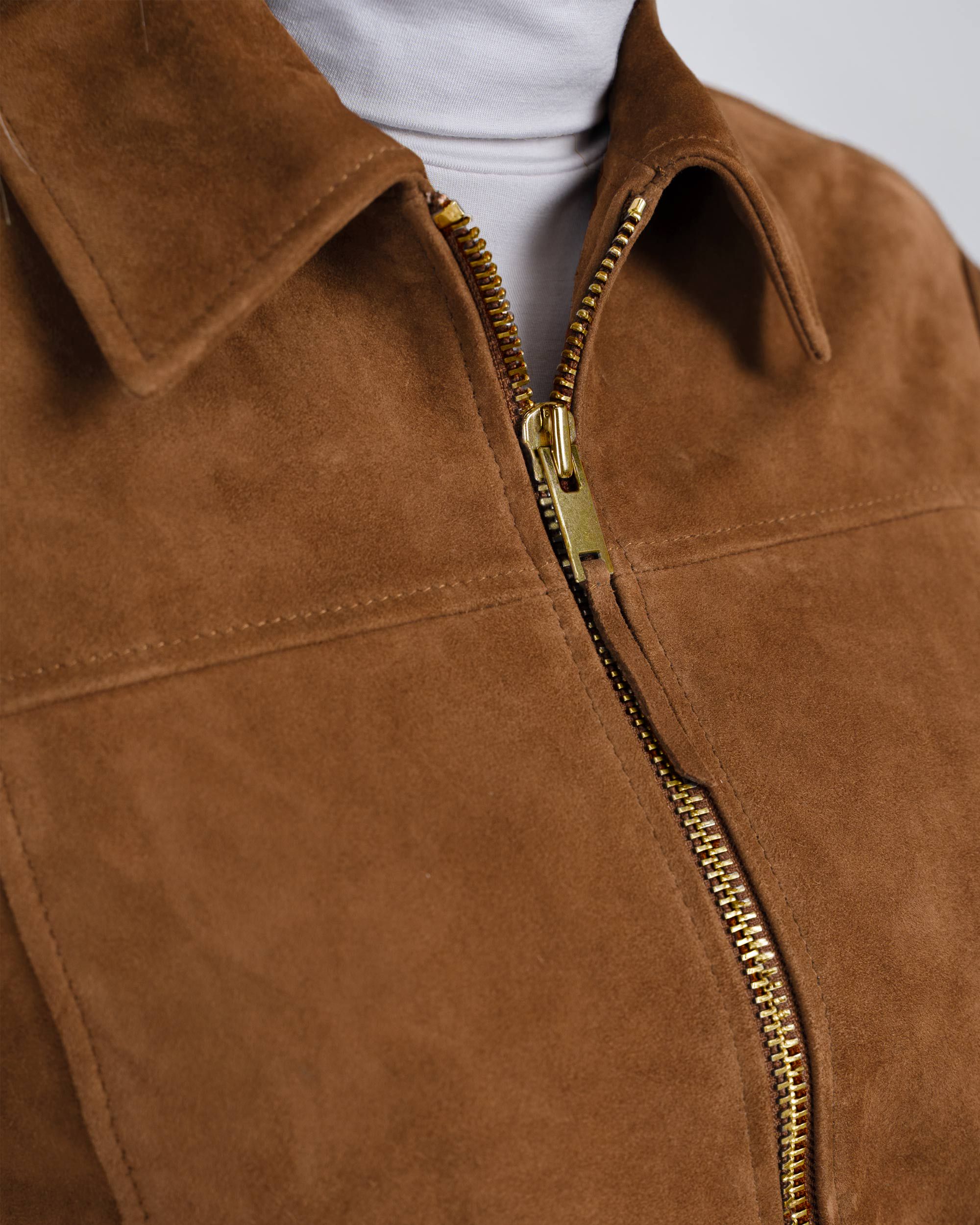 Crafted from supple suede, this regular fit bomber jacket offers a luxurious feel combined with durability and natural breathability, keeping you comfortable throughout the day. The zip closure and collar add a classic edge, while a suede zip puller and front pockets provide practical style. The item is good for those seeking a timeless, stylish piece with both comfort and practicality.
