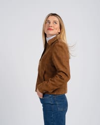 100% suede is a luxurious, soft fabric known for its velvety texture and supple feel. It offers natural breathability and insulation, providing warmth while remaining comfortable to wear. Suede has a unique, elegant appearance that ages beautifully, developing character over time. This fabric is durable yet lightweight, making it perfect for stylish outerwear like jackets. With its smooth touch and classic appeal, suede combines comfort and sophistication in one versatile material.