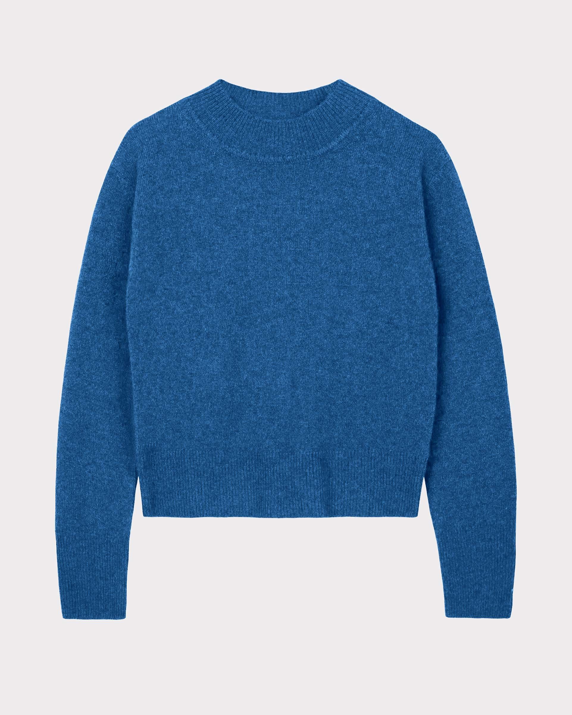 A true wardrobe favourite, crafted in beautifully soft carded merino wool. The short mock neck and slight drop shoulders create an effortless silhouette, while the ribbed cuffs, hem and neckline add subtle detail and shape. With its straight body and regular fit, it feels easy to wear.